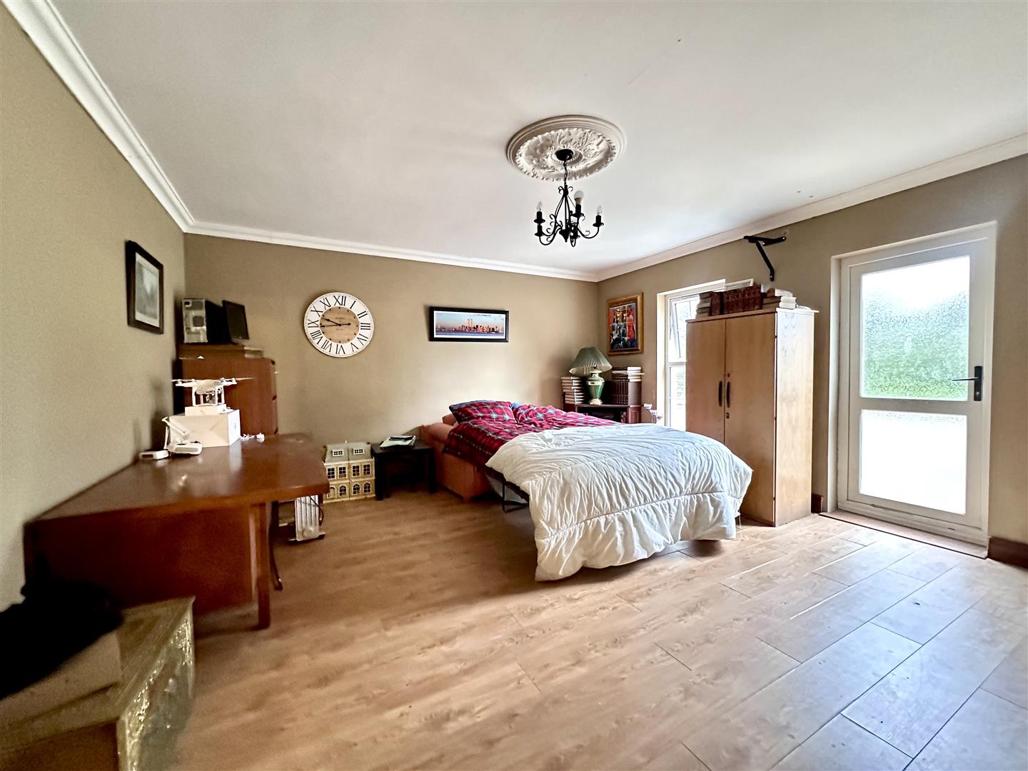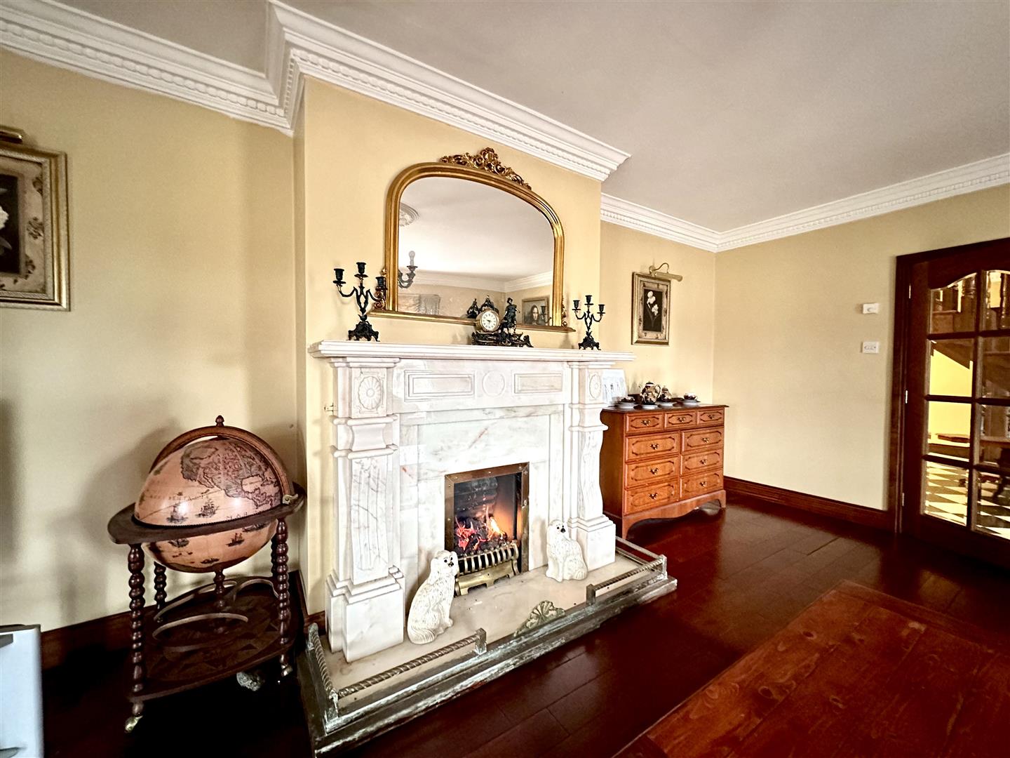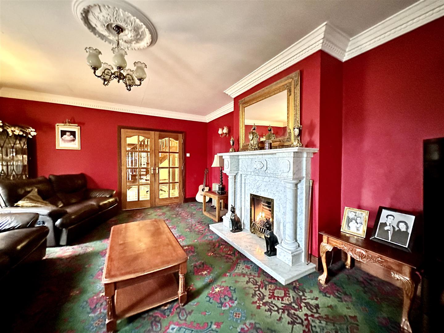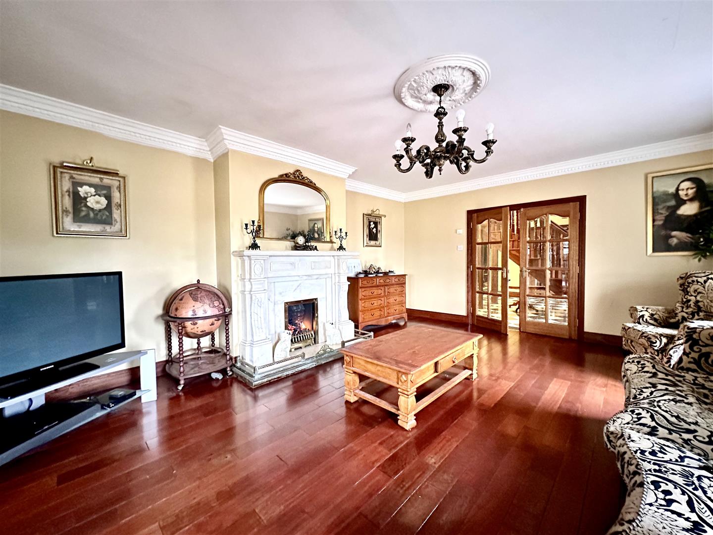 Gas fire with Marble fireplace surround. Moulded cornicing and centre rose. Solid wooden floor. Television and power points. French doors leading to sunroom.