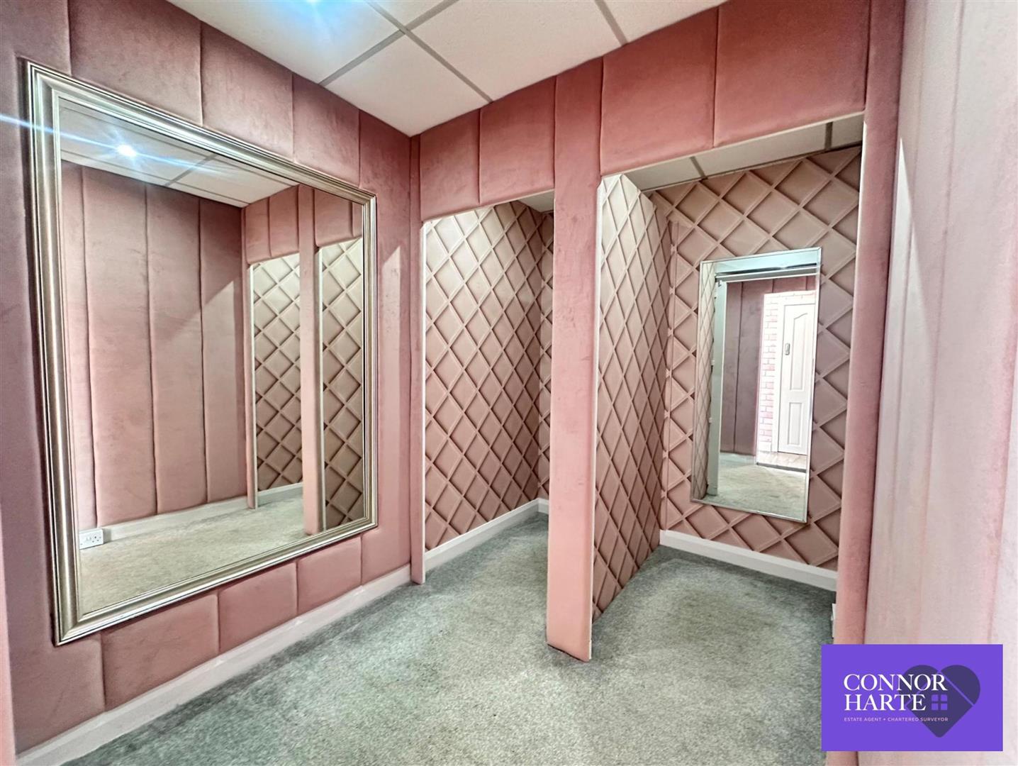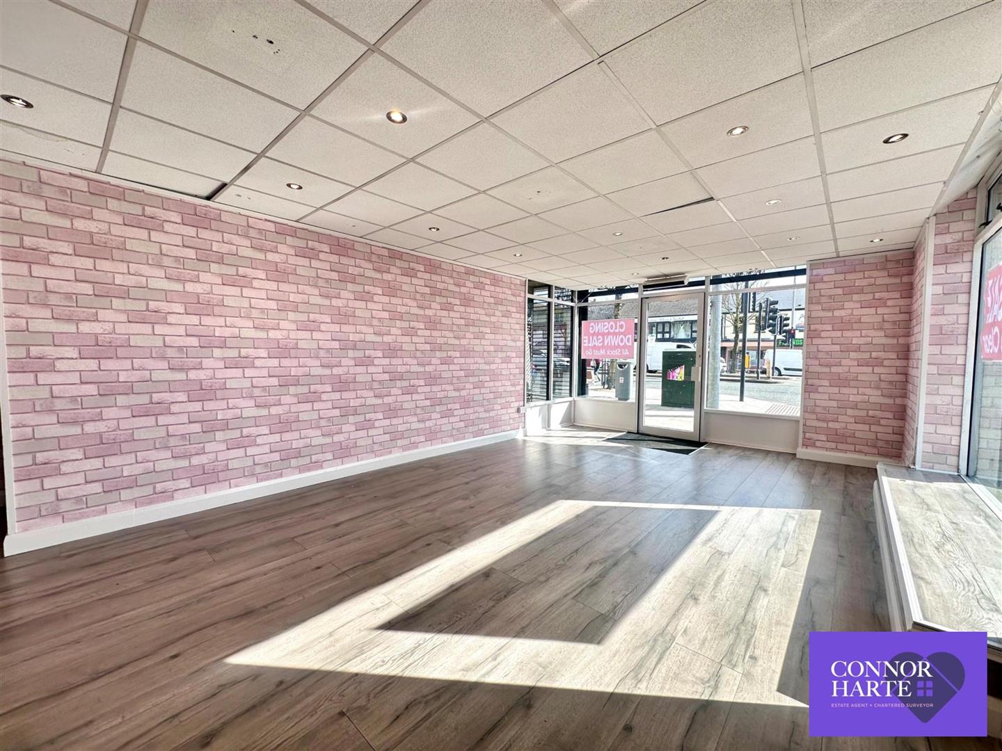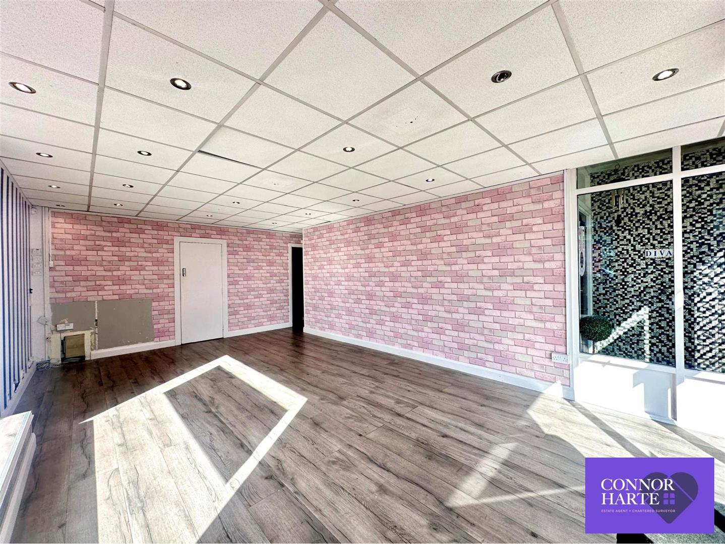 Shop: 4.06m x 7.1m Laminated wooden floor. Spot lighting.