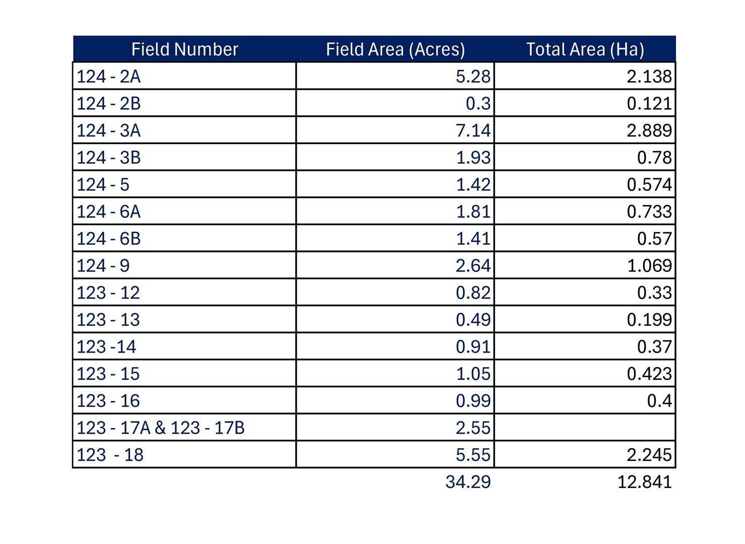 LOT 4: Reminder of fields listed circa 16.5 acres. All lands excluding 128 18, 124 2A, 124 3A, 124 3B 124 6A & 124 6B