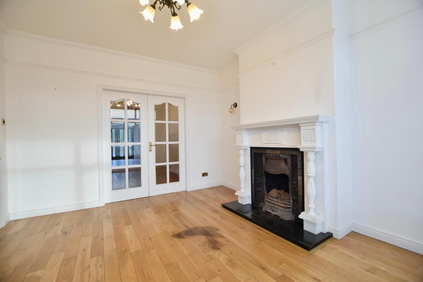 Solid oak flooring. TV point. Front facing bay window. Fireplace with open fire. French doors to dining room/snug area. Ceiling cornice & dado rail. - Dining Room / Snug