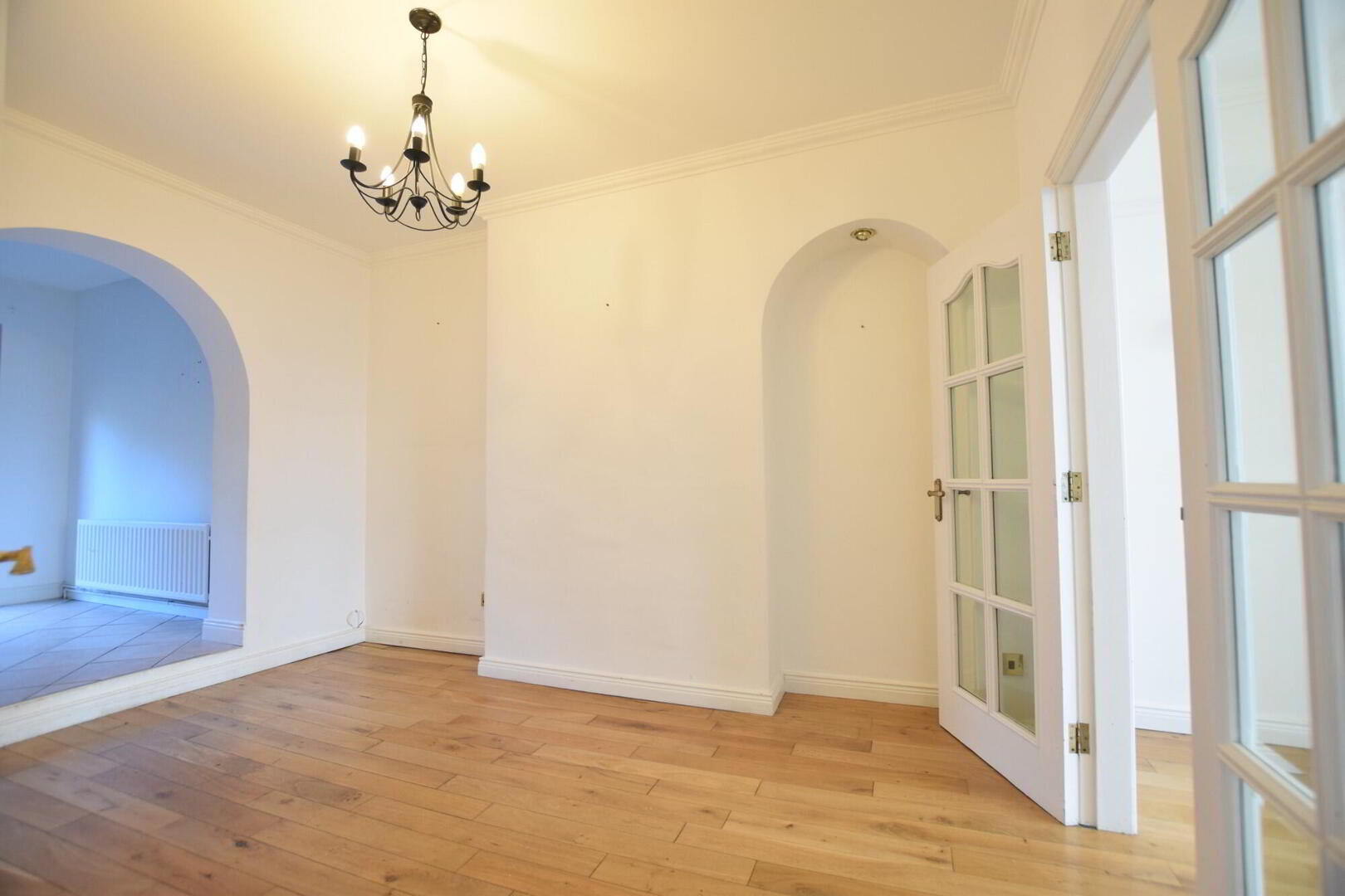 Access to kitchen. Solid oak flooring. Ceiling cornice. TV point - Kitchen / Dining area