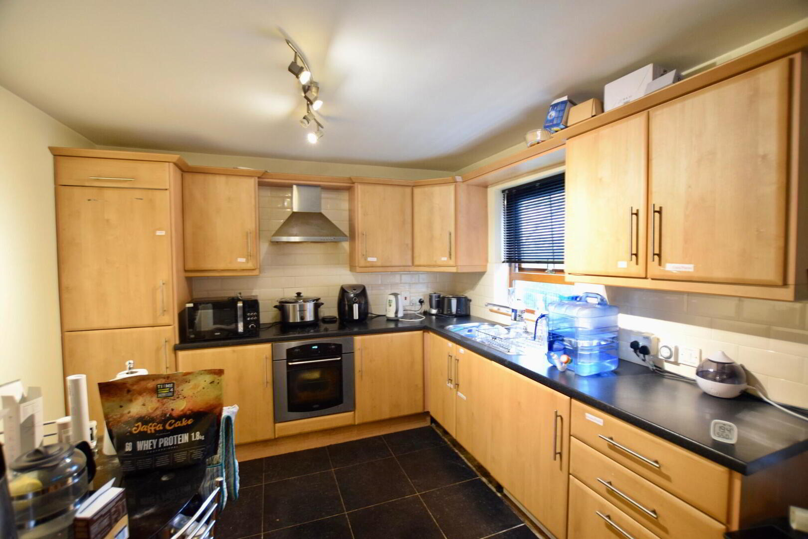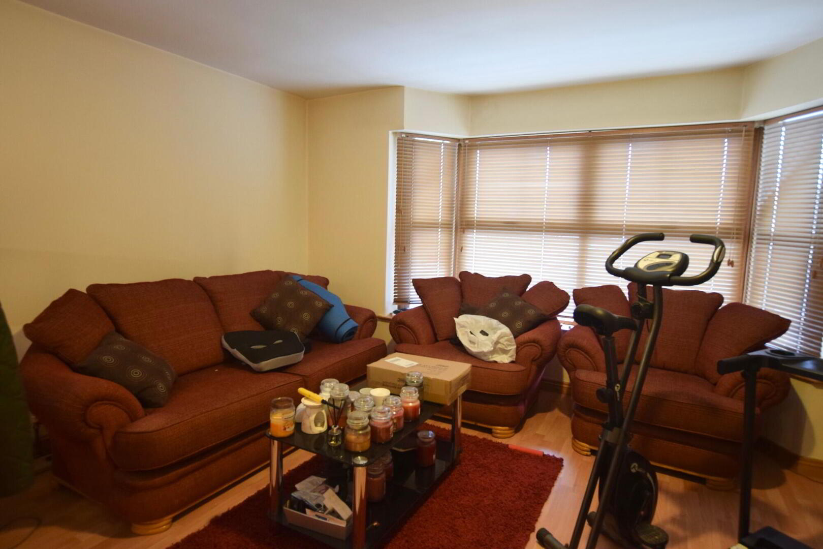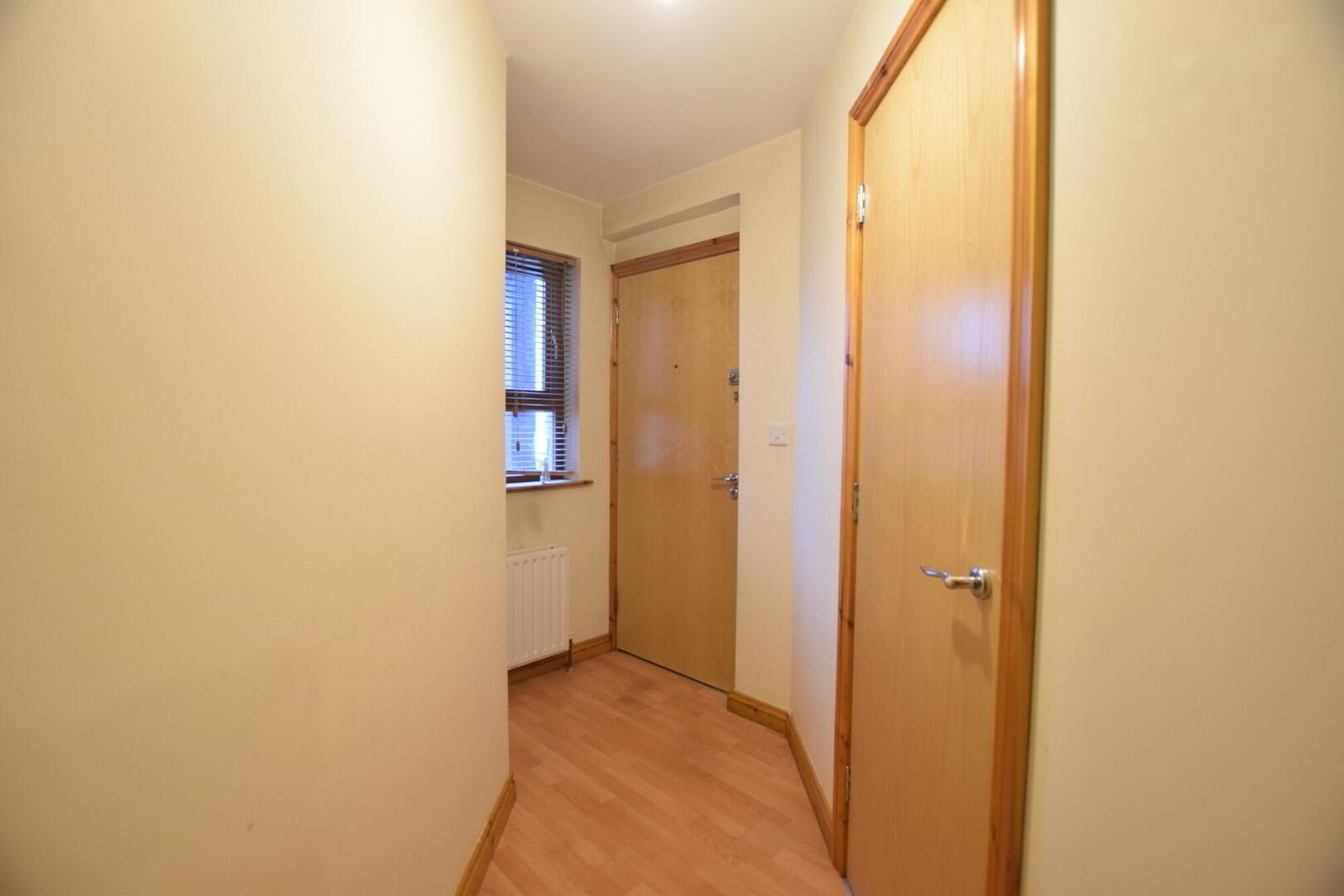 Front facing open plan living/dining/kitchen. Laminate flooring to living area. TV point. Fully fitted kitchen with high and low level units with tiling between. Tiled flooring. - Bathroom