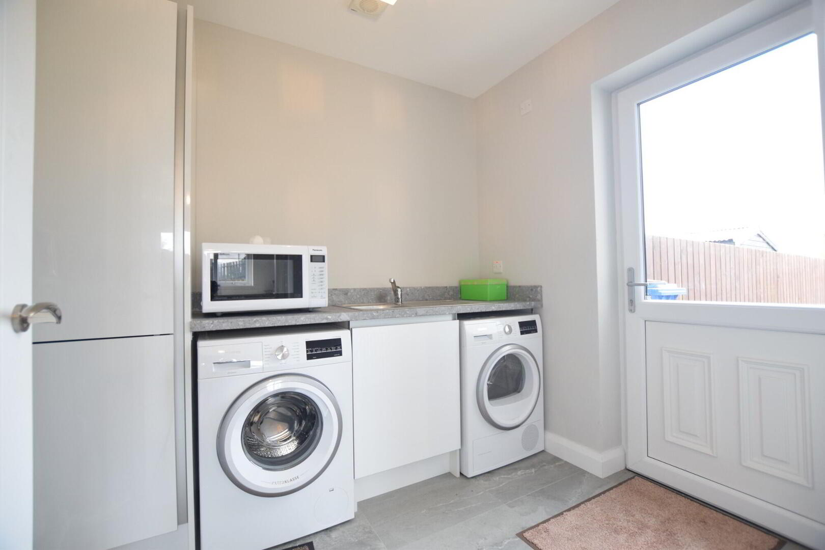 High quality fully fitted kitchen with a range of high and low level units. Frankie under-counter sink. Premium appliances including integrated fridge freezer, dishwasher and oven/hob/extractor fan. Granite worktop and up-stands. Tiled floor. TV Point. Snug/Dining area with door to rear patio. - Utility Room