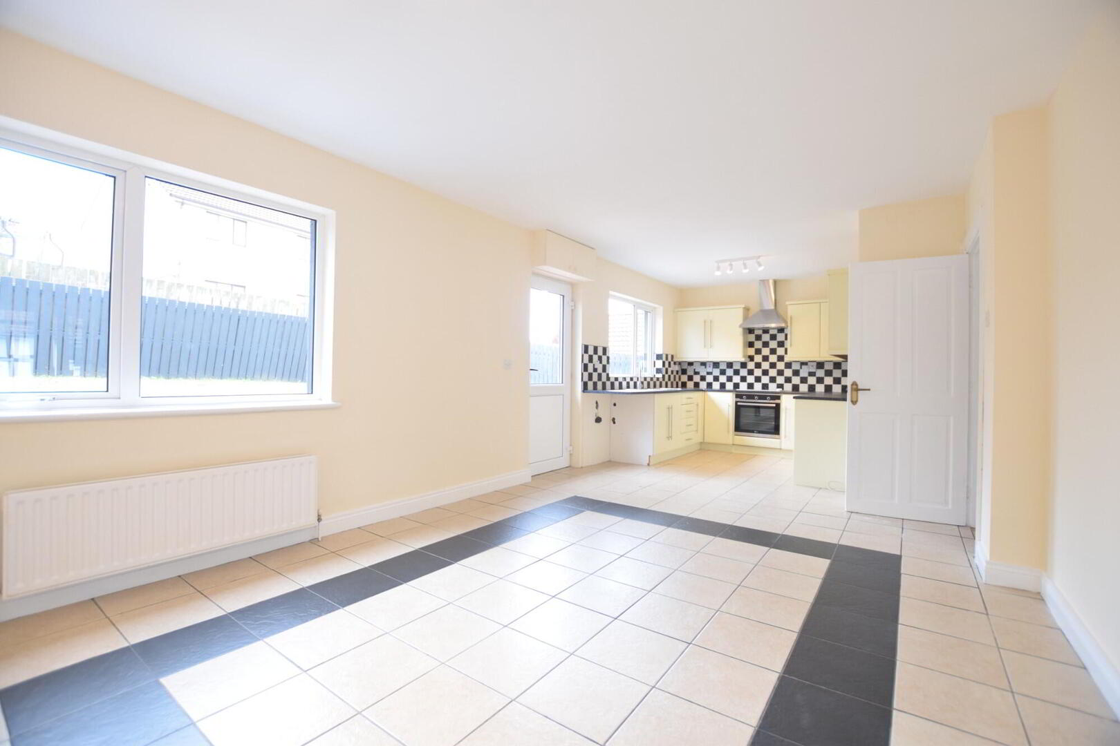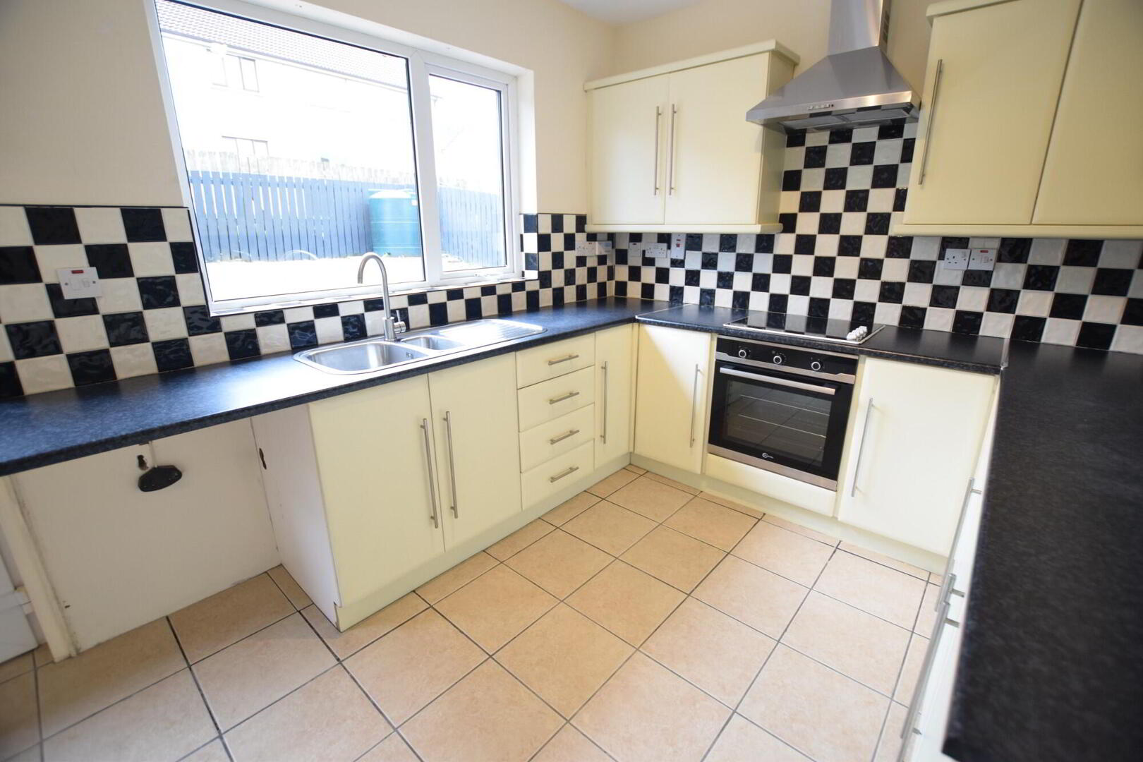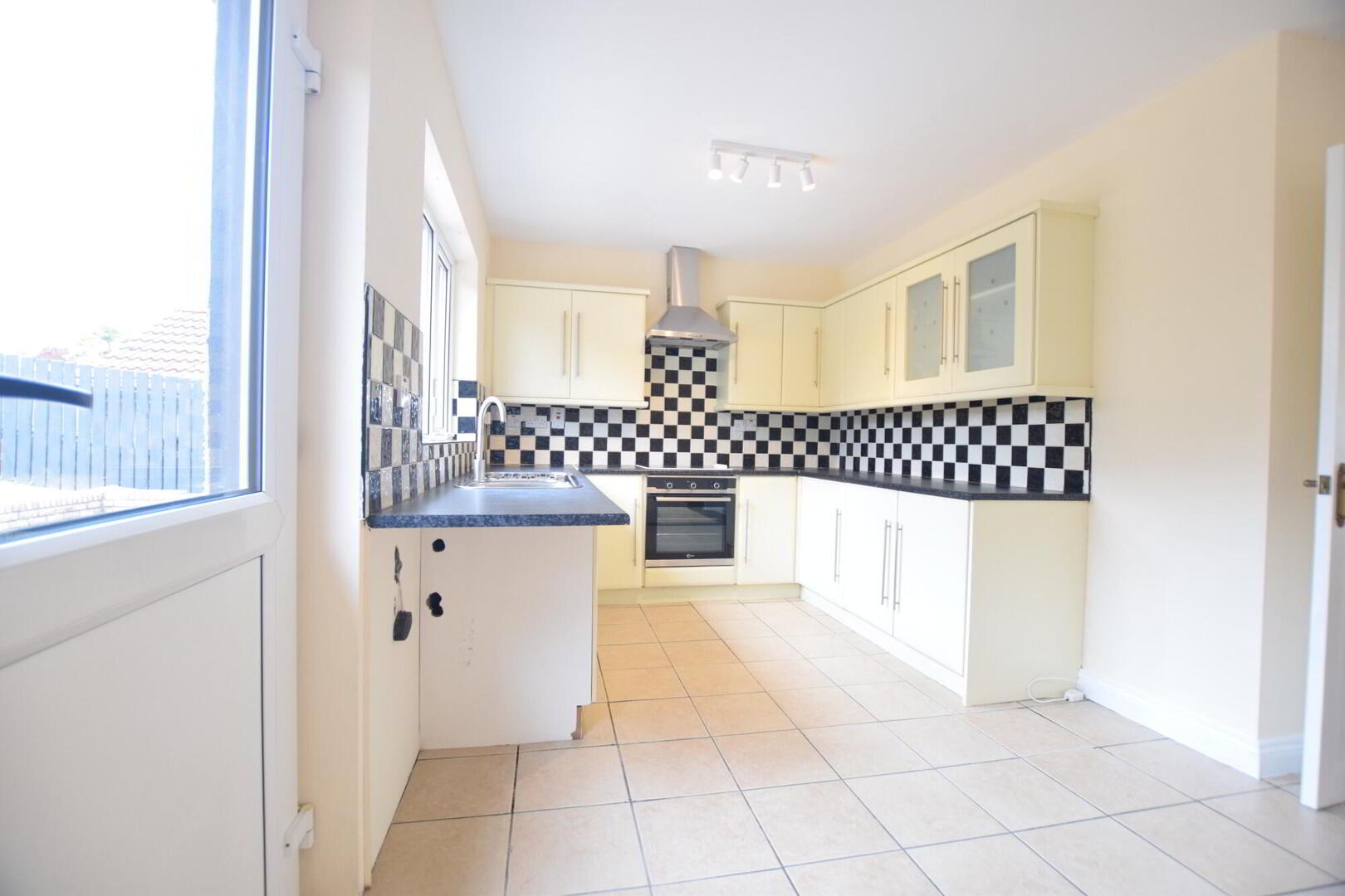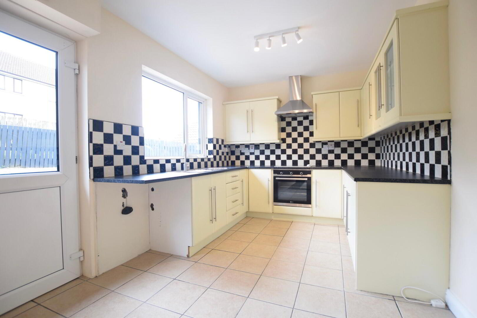 Fully fitted kitchen with high and low level units, tiled between. Sink. Integrated oven/hob. Tiled floor. Dining area. Door to rear garden. - Bathroom