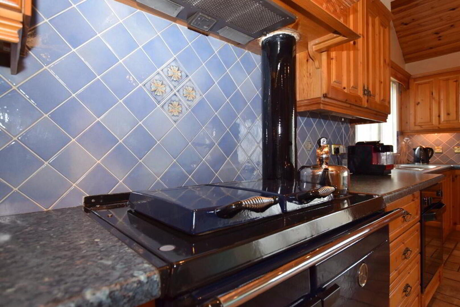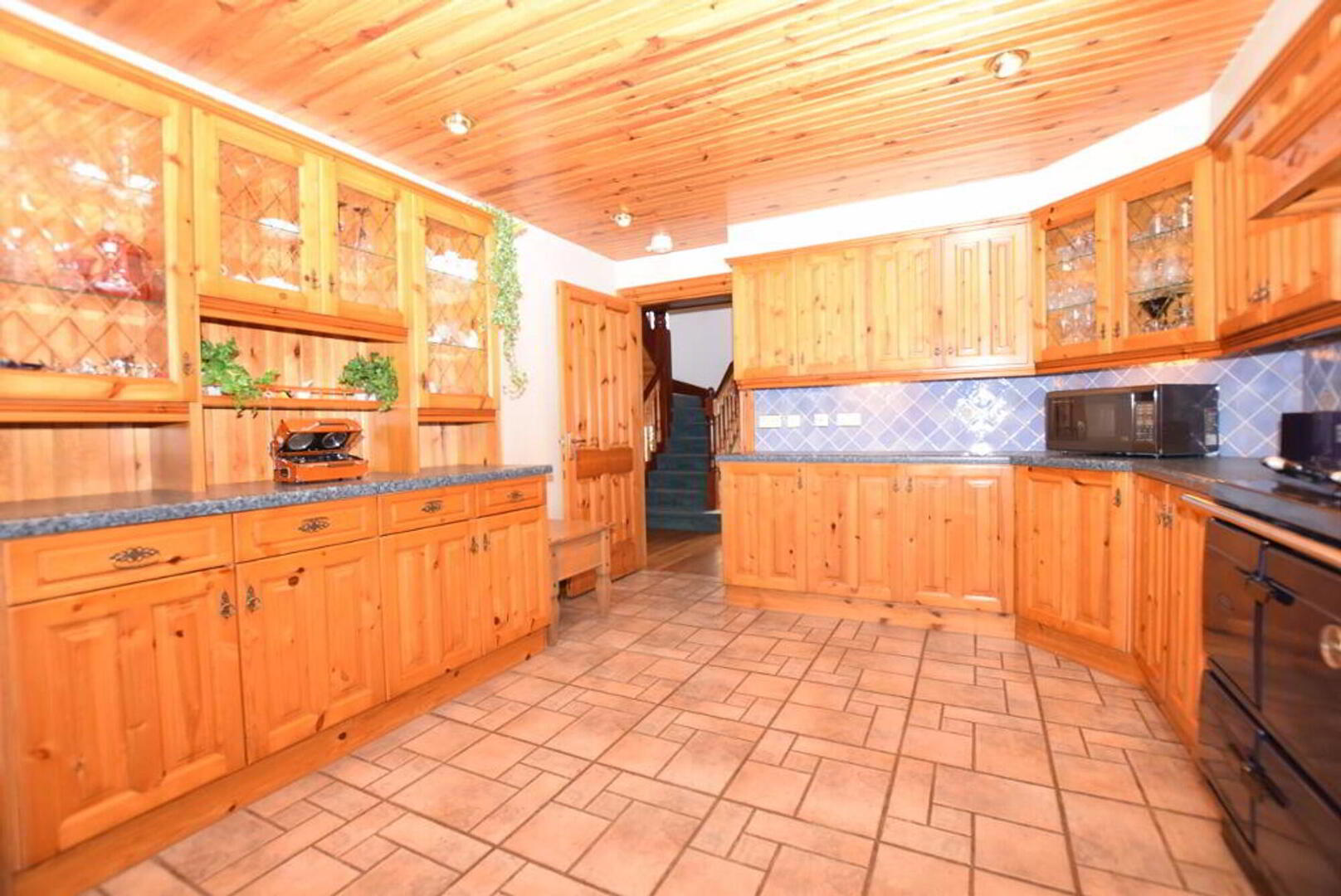 Kitchen: 6.2m wide (20' 4) 4.9m long (16' 1) Kitchen with excellent range of high and low level units with tiling between. Pine ceiling. Tiled flooring. Stanley Range double burner. Separate electric oven. Separate hob. Dishwasher. Fridge Freezer. Deep fat fryer. Extractor canopy fan. Adjoining dining space.
