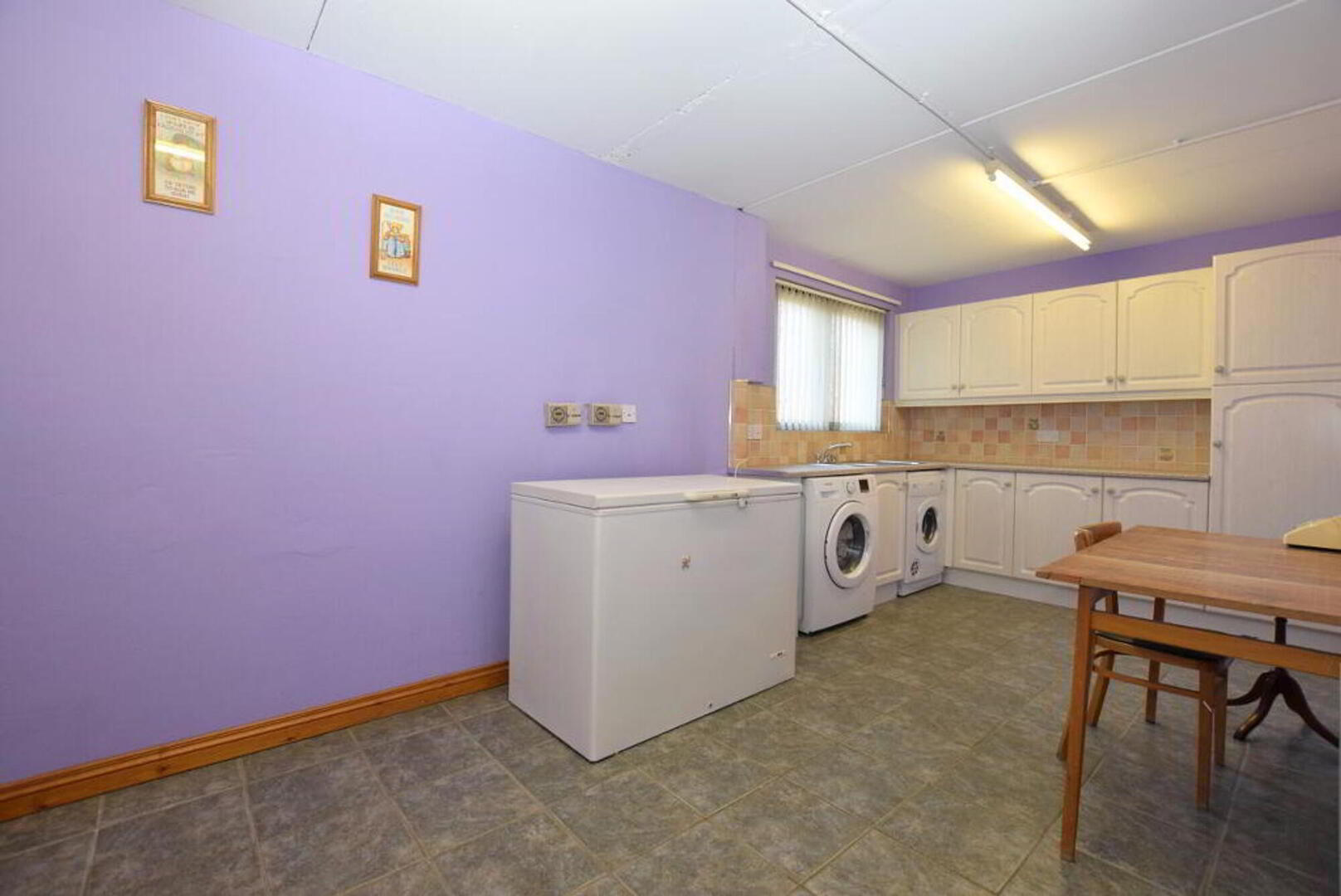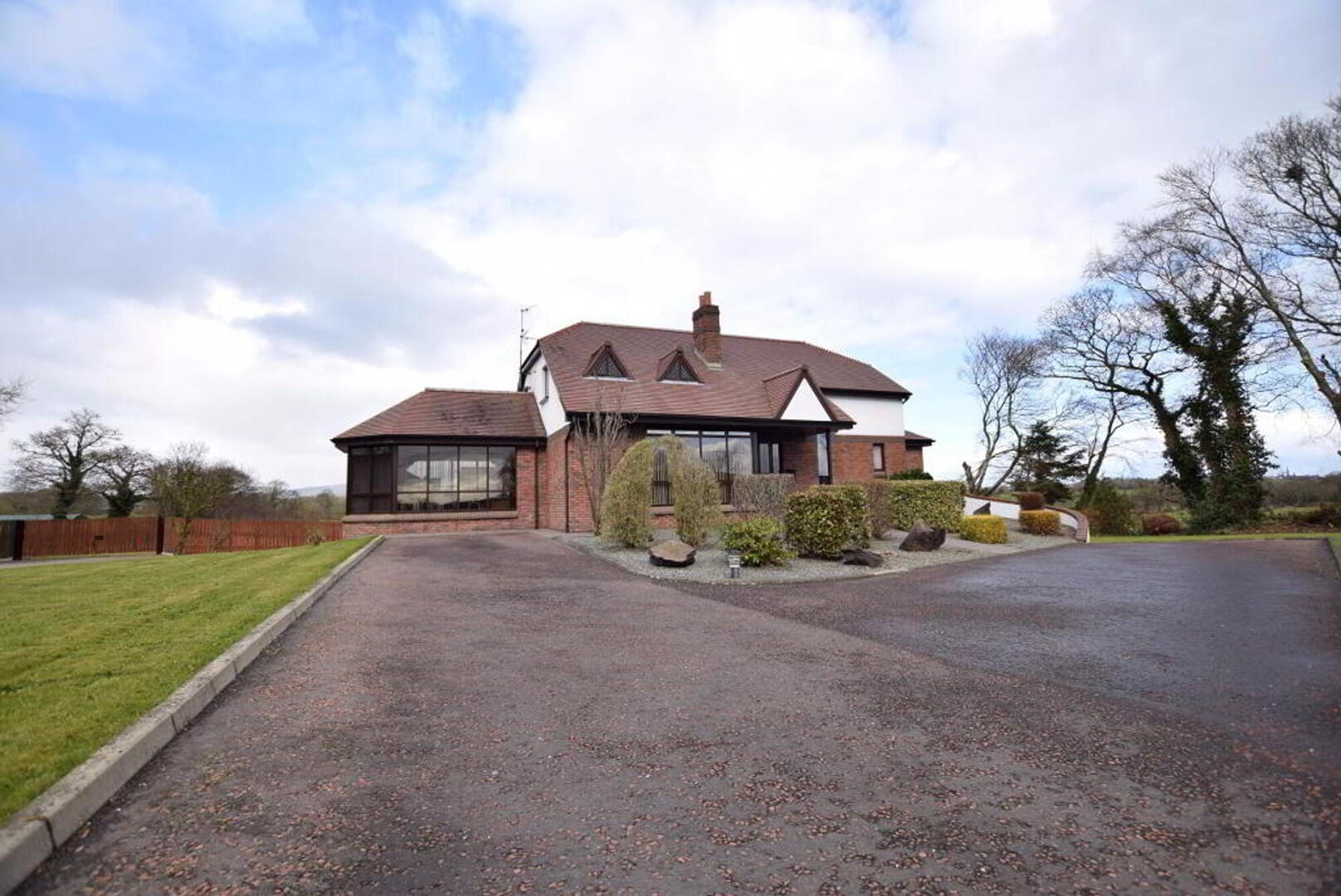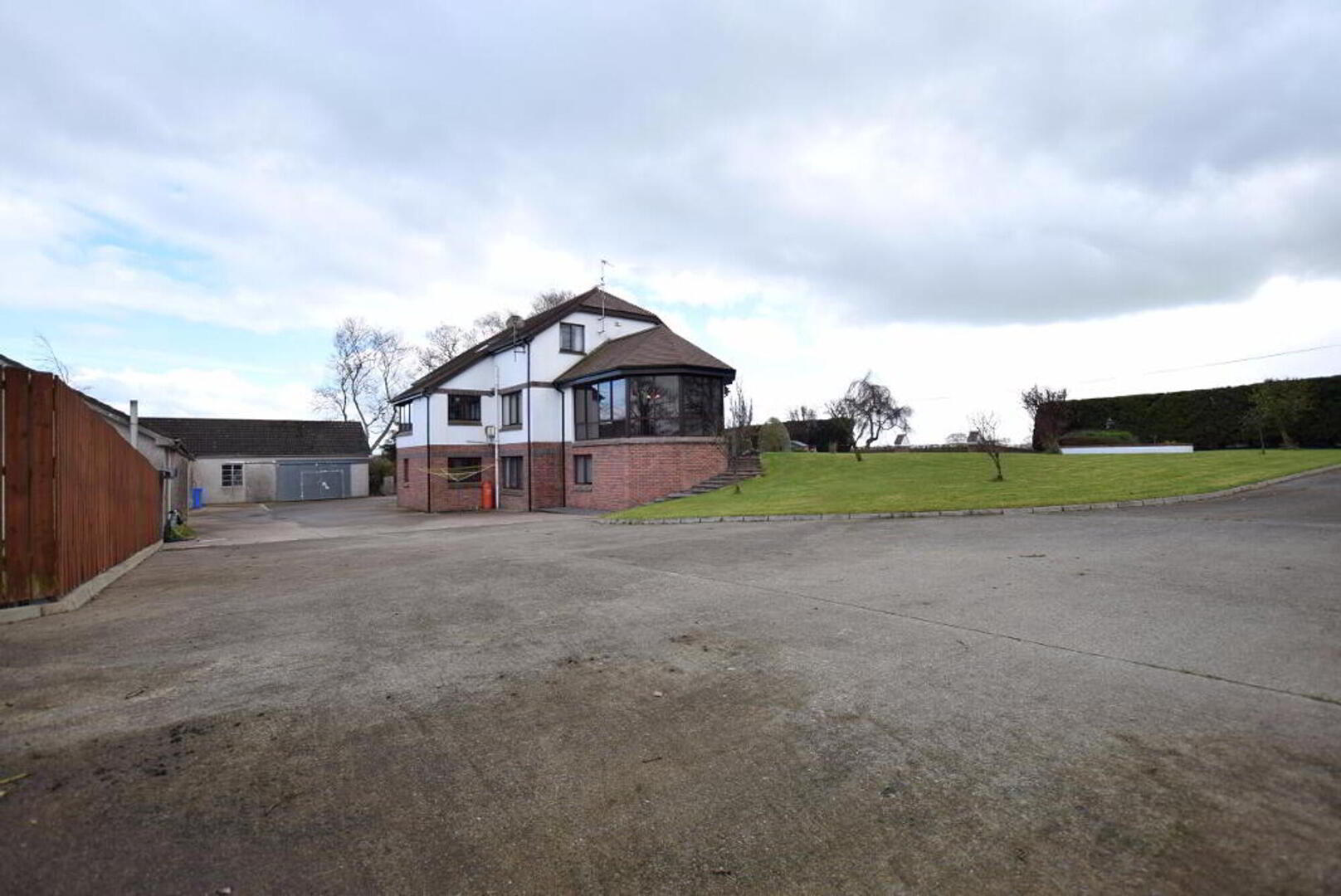Basement area: Stairs from kitchen to tiled hallway and sitting area, stable door to rear yard. W.C. and corner shower. Sauna. Utility room with fitted units (6.2m x 2.4m) Storage room (plumbed for oil fired boiler). Games room/sitting area/office with laminate flooring (9.8m x 8.7m). Access to integrated garage with roller door.