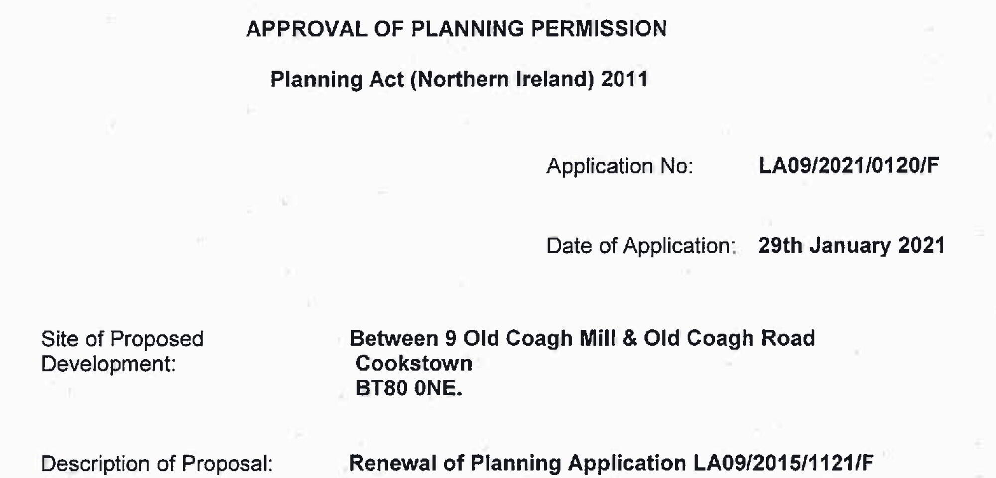 A building site close to the town centre in a popular location of Cookstown with full planning for two semi detached dwellings.