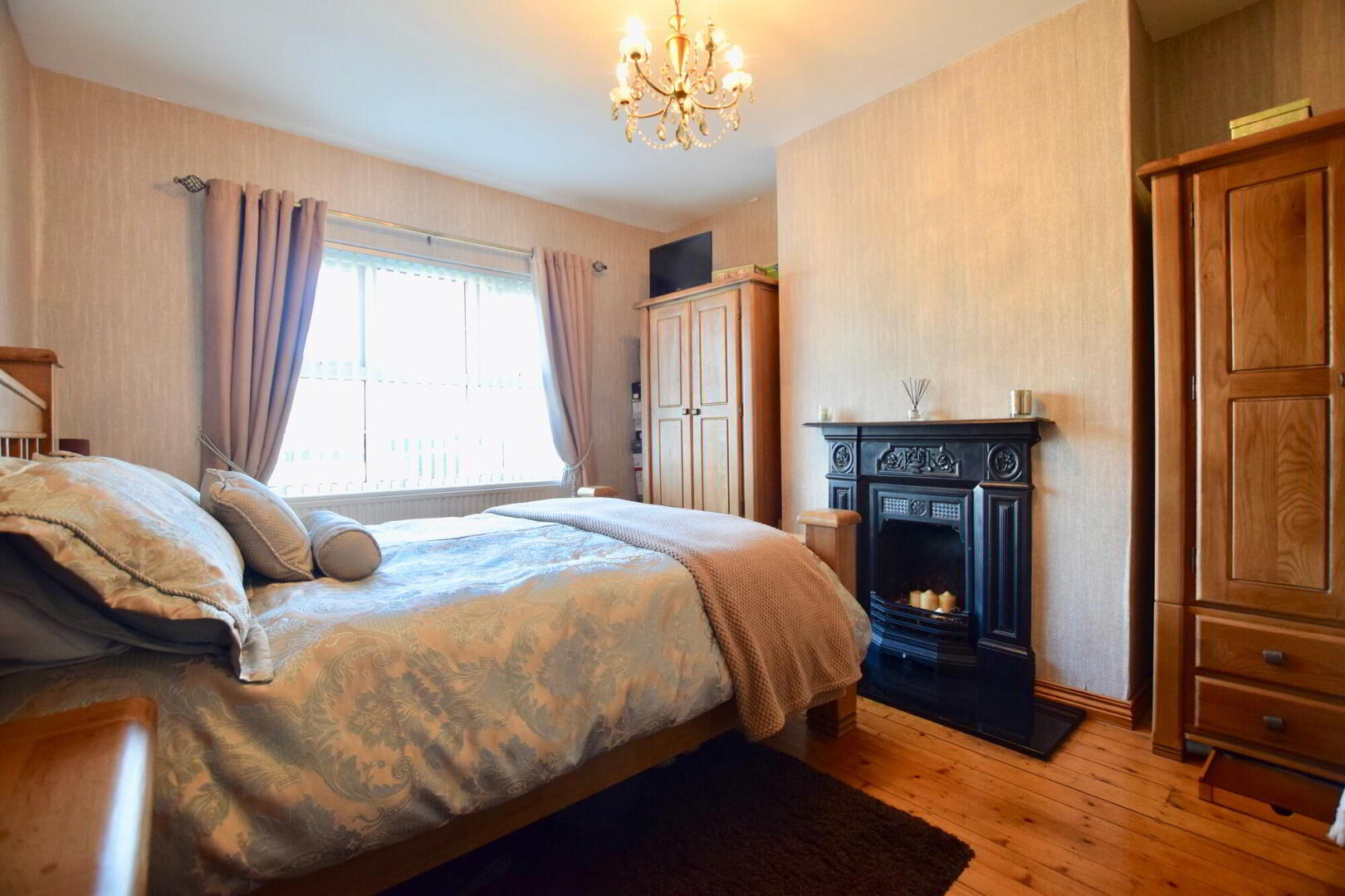 Front facing double bedroom. Wooden flooring. TV point. Fireplace with previous open fire. - Bedroom 2