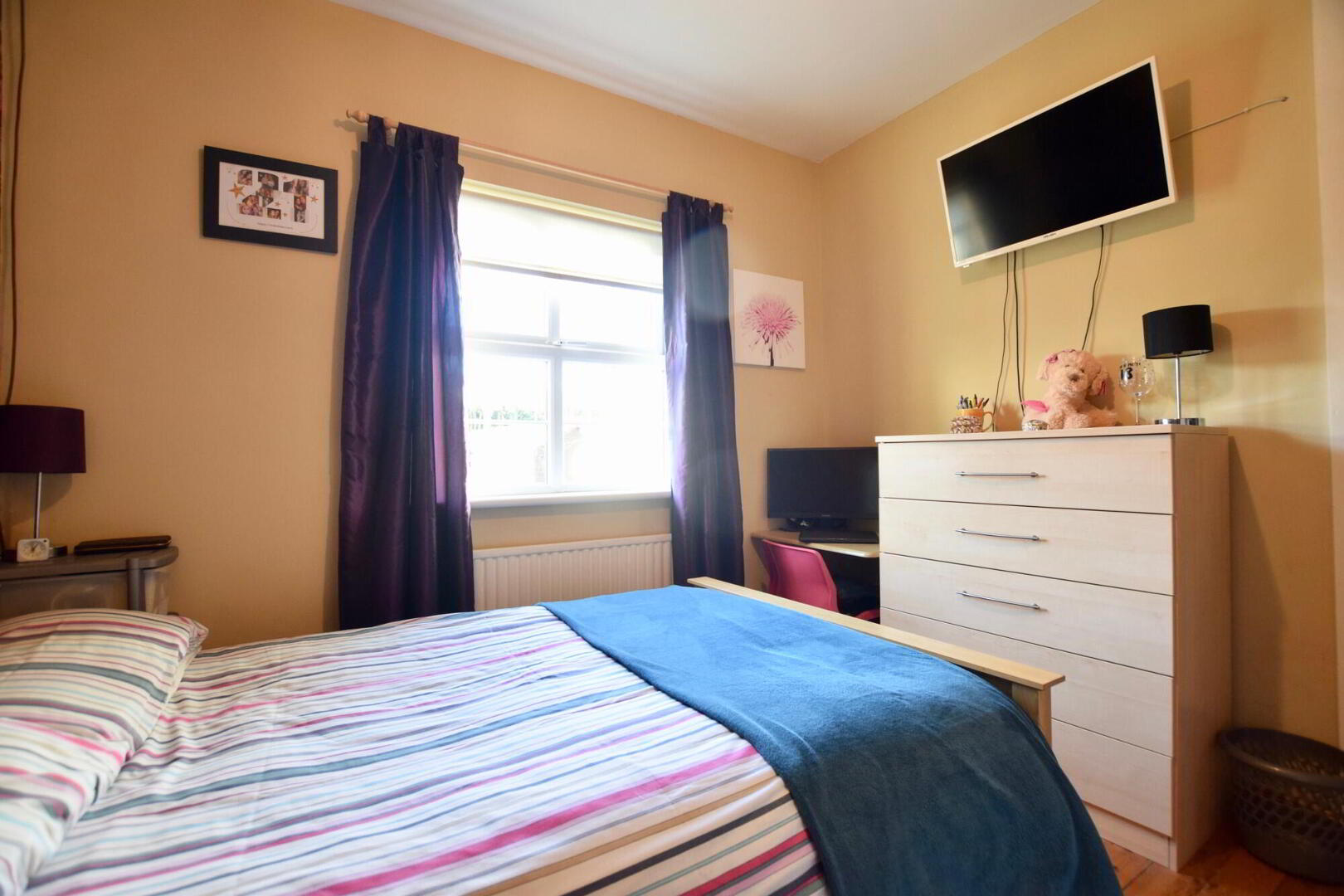 Rear facing double bedroom. Wooden flooring. TV point. Hot press. - Bedroom 3