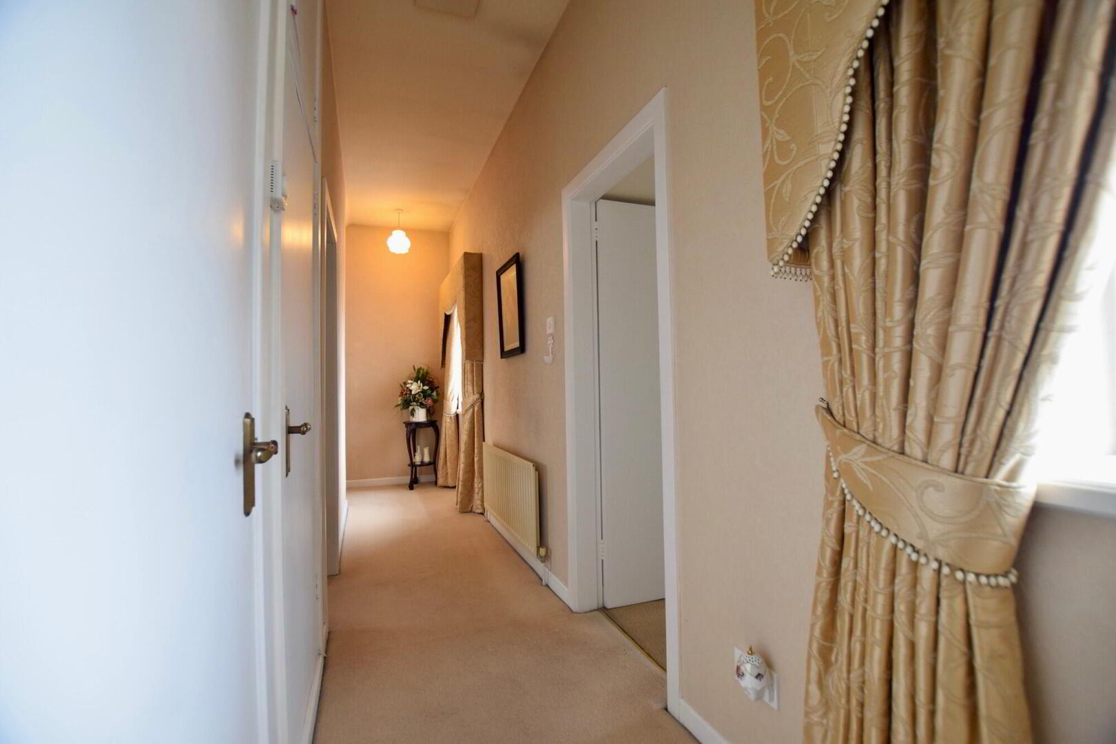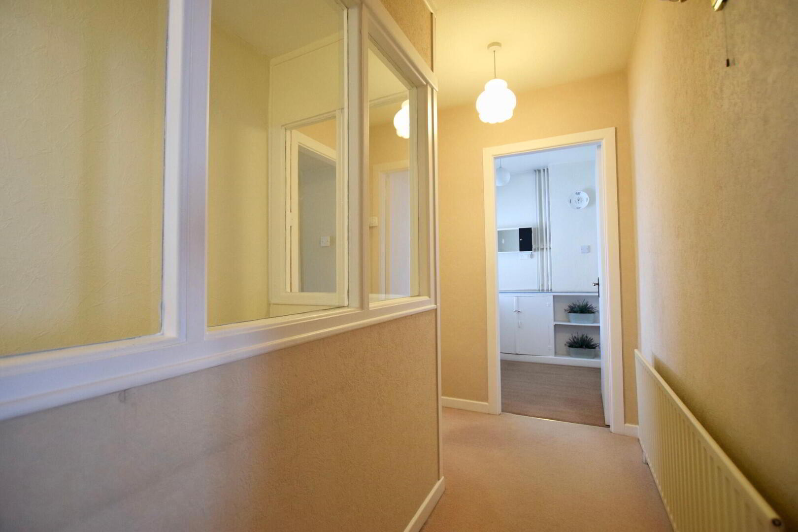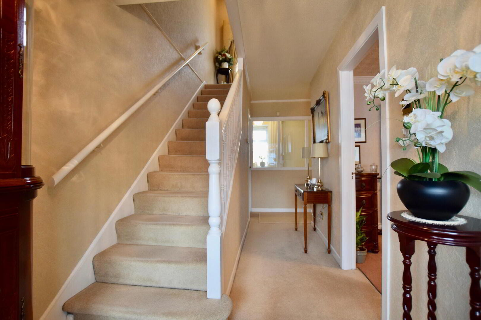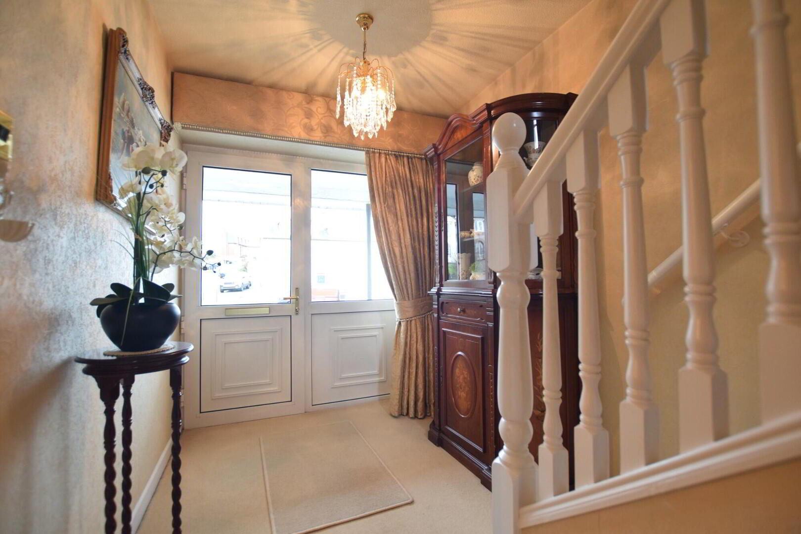 Partially glazed uPVC entrance door. Carpeted. Understair storage.