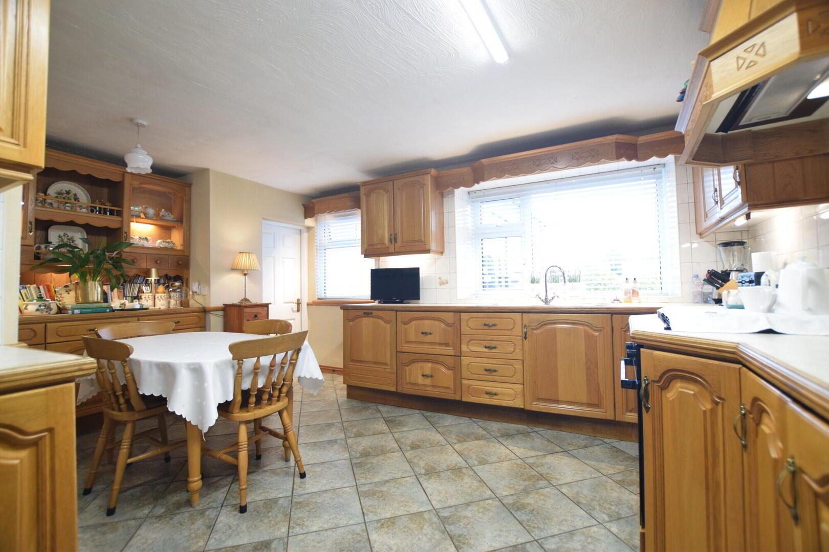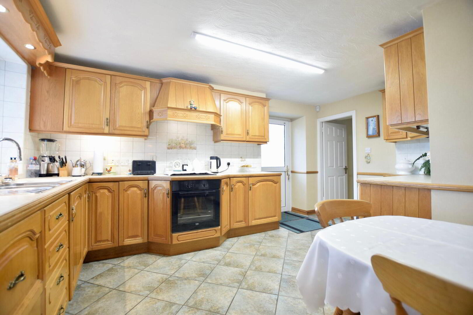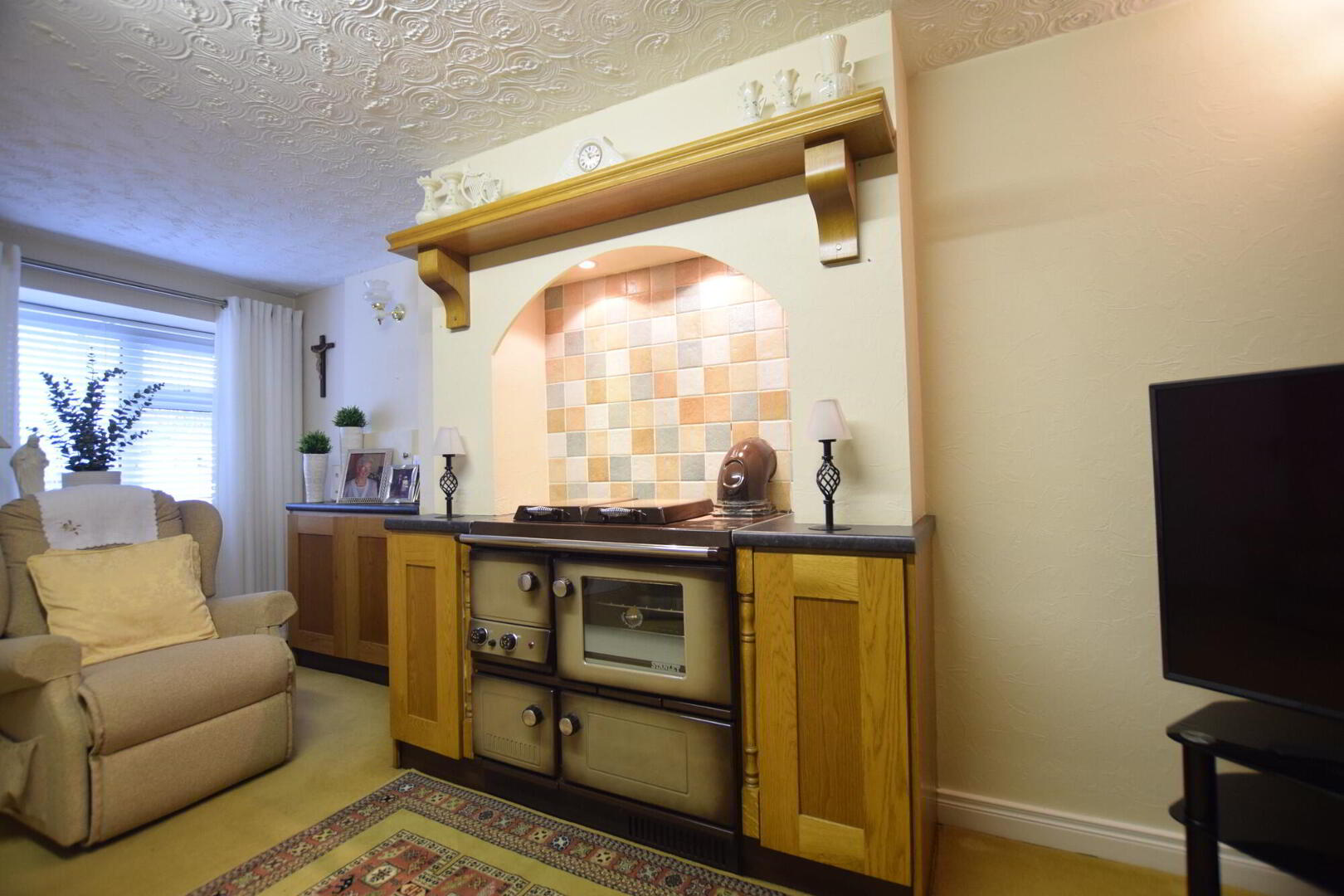 Fully fitted kitchen with high and low level units, tiled between. Tiled floor. TV point. Door to rear garden. Door to washroom/ . Gas hob. Electric oven. Dishwasher. Fridge. - Living Room