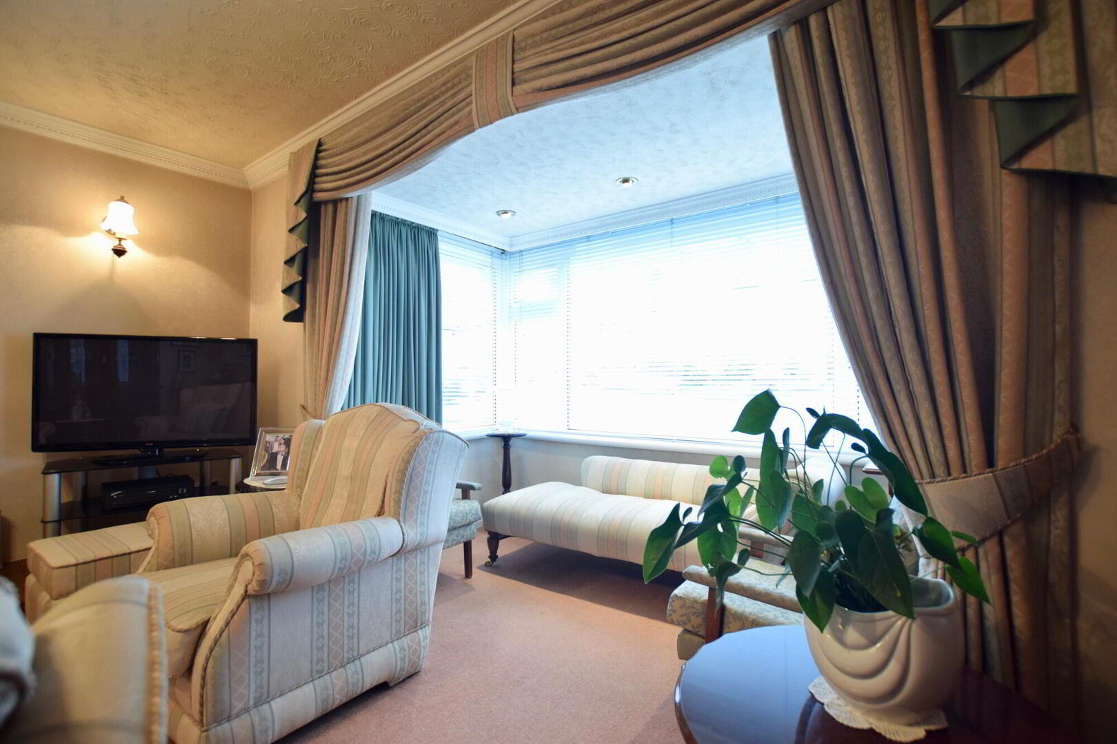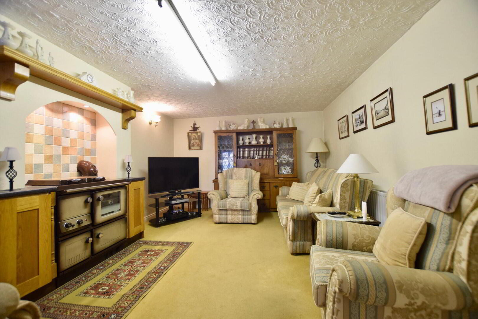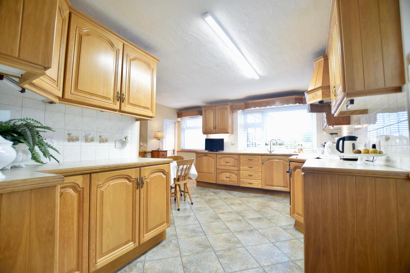 Fully fitted kitchen with high and low level units, tiled between. Tiled floor. TV point. Door to rear garden. Door to washroom/ . Gas hob. Electric oven. Dishwasher. Fridge. - Living Room