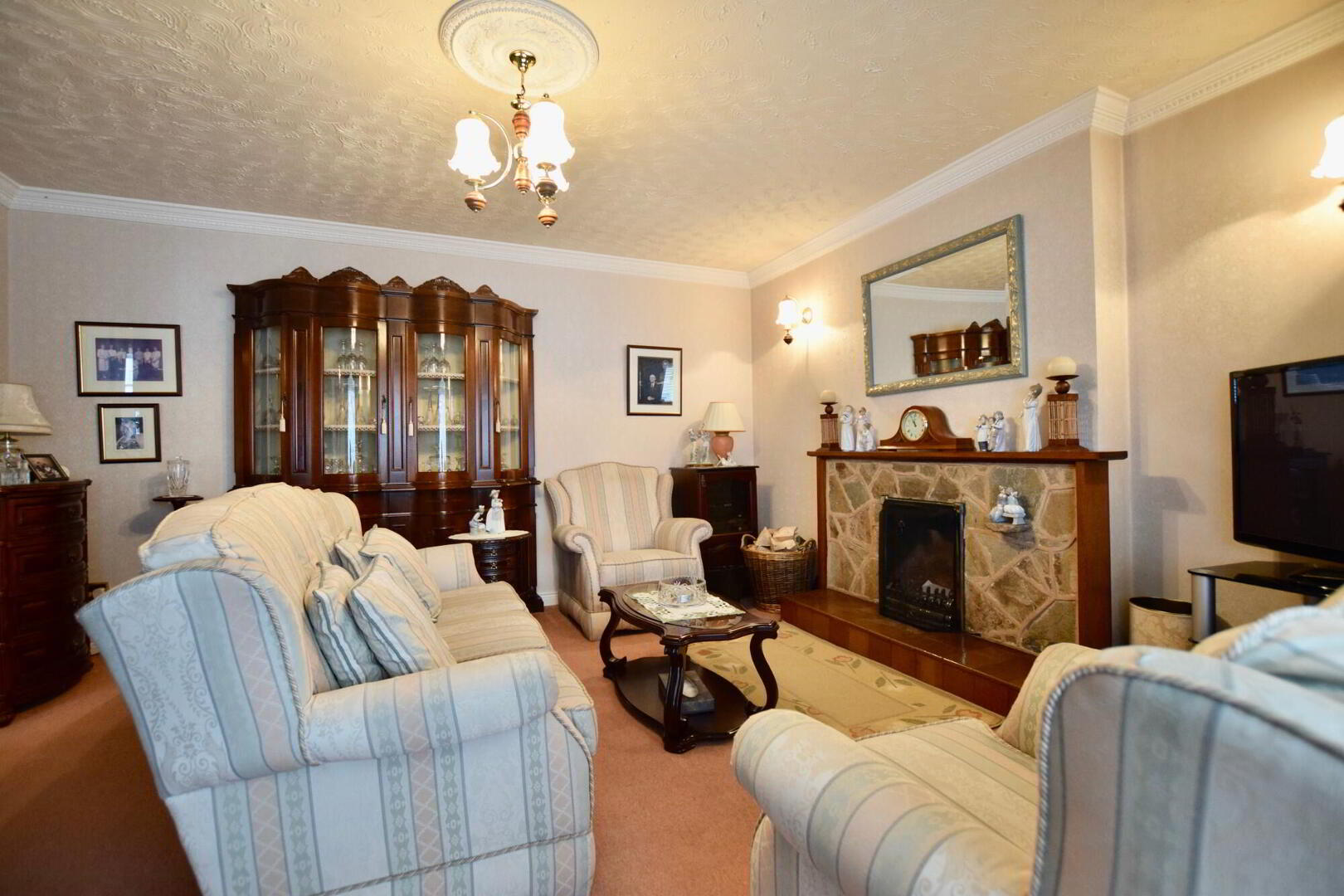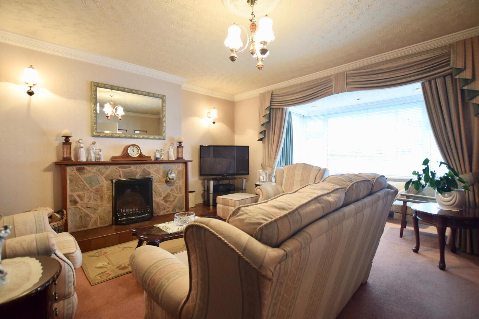 Front facing lounge with bay window. Carpeted. TV point. Fireplace with open fire. - Bedroom 1