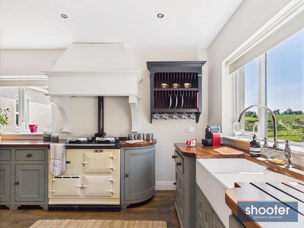 Discover the perfect blend of contemporary living and serene country calmness at 24 Fir Tree Lane, Scarva. This impressive detached residence is set on a generous site and boasts breathtaking rural views. Accommodation comprises five well-proportioned bedrooms and three generous reception rooms, thoughtfully designed to cater to both family living and entertaining. The specification includes bison slab floors, intercom electrical gates, security alarm, Beam vacuum system, Aga cooker, bespoke Wilsons of Dromore in frame kitchen, reclaimed Wilsons of Dromore solid wood floor boards. The property also benefits from a large, detached double garage. Set in a sought after rural road the property is surrounded by immaculate gardens and landscaped grounds that frame sweeping rural vistas.