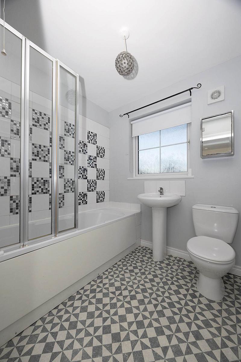 o Family Bathroom A clean and modern family bathroom featuring a white three-piece suite.
