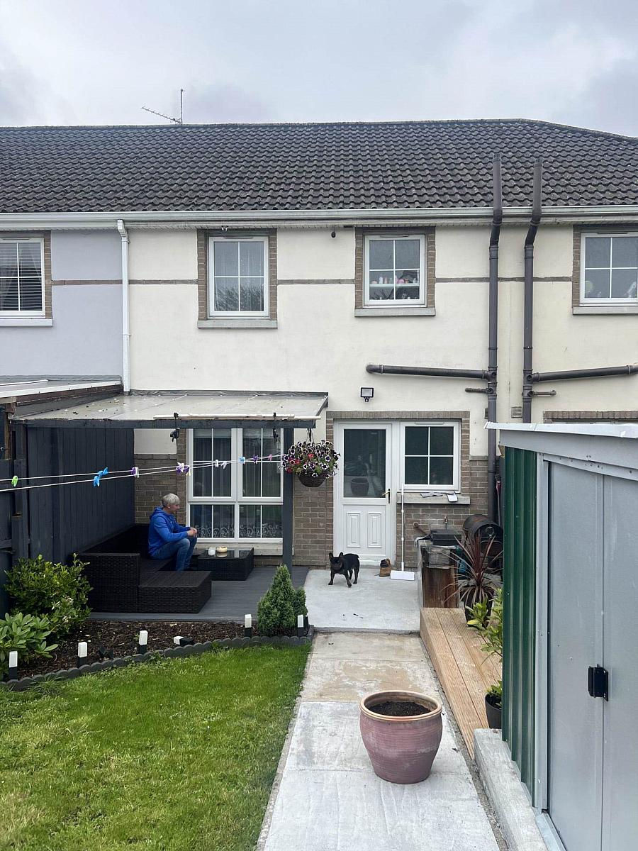 Enclosed rear garden area. Paved walkway to rear door. Decking area. Small lawn area. Shrubbery. Gated and fenced boundary. Gravel driveway to the front.