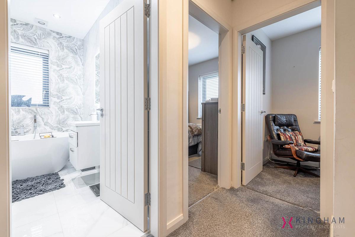 Upstairs, I offer three well-proportioned bedrooms. My principal suite is generous and composed, complete with a private en-suite finished to a luxurious standard. My family bathroom is rather special a four-piece suite with a freestanding bath, designed for unhurried evenings and quiet indulgence. Both bathrooms feature LED illuminated mirrors, adding a contemporary, refined glow.