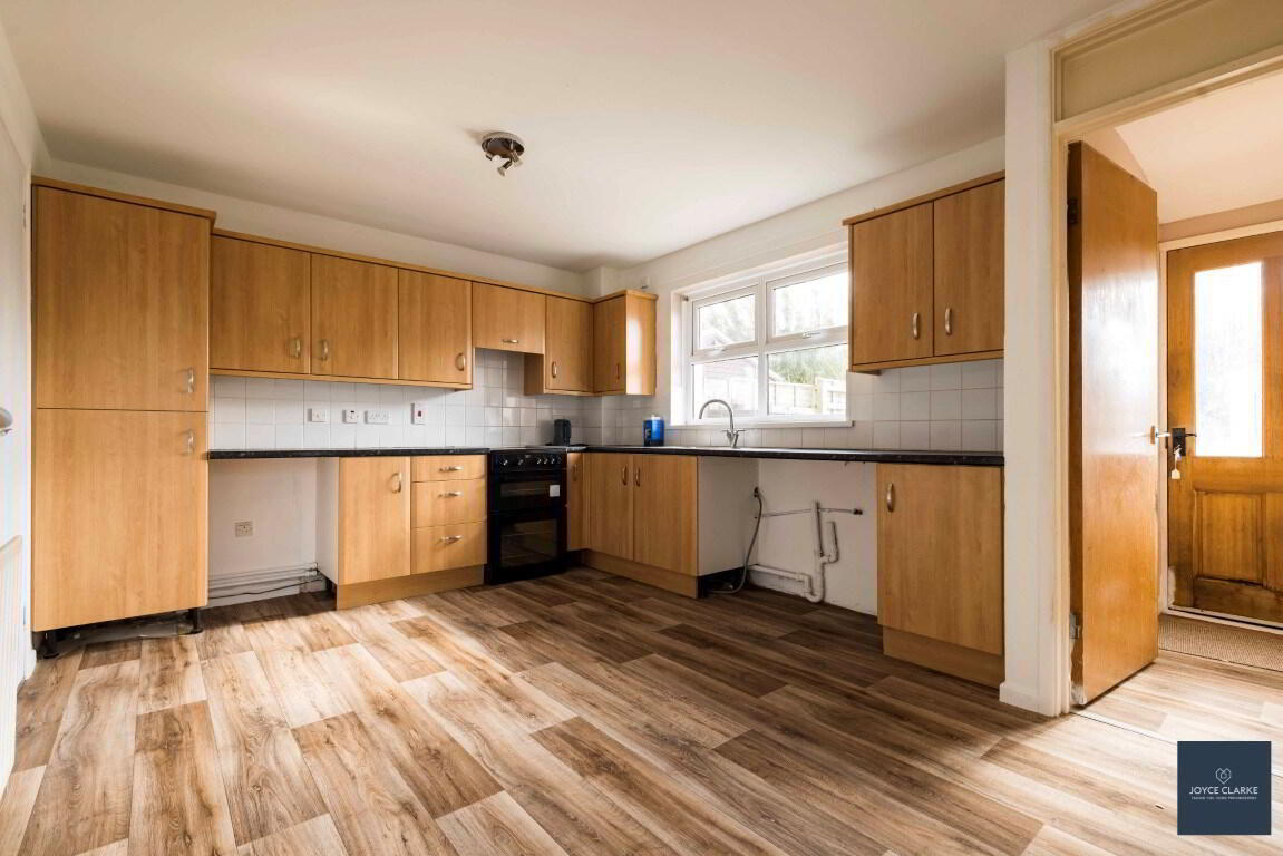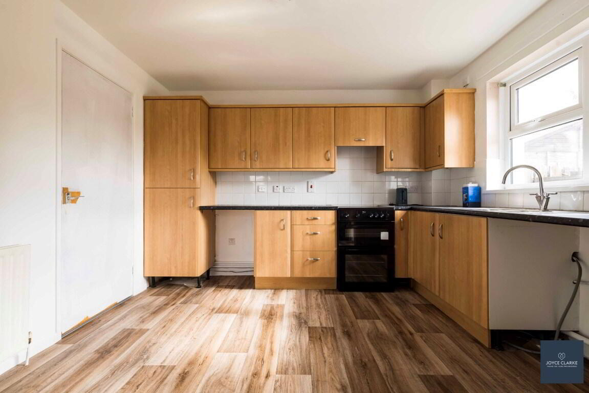 Range of high and low level storage units. One and a half bowl stainless steel sink and drainer. Beko oven and four ring hob. Double panel radiator. Space for fridge, washing machine and tumble dryer. Walk in storage cupboard.