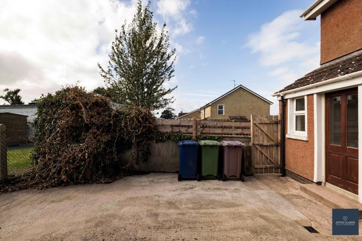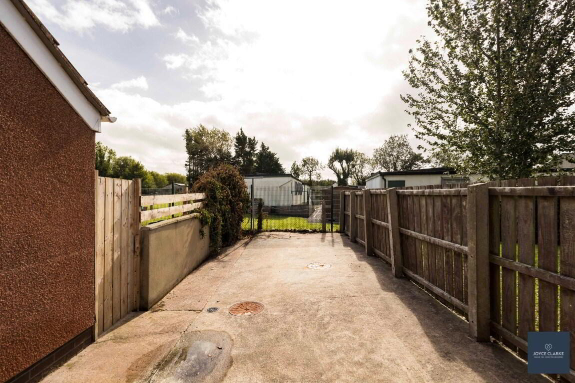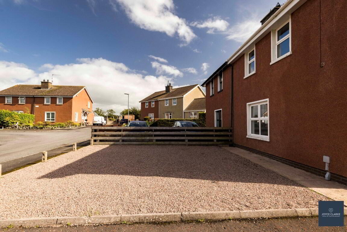 Garden laid in attractive pink stones. Extensive tarmac driveway. Access gate to rear and double gates leading to additional parking.