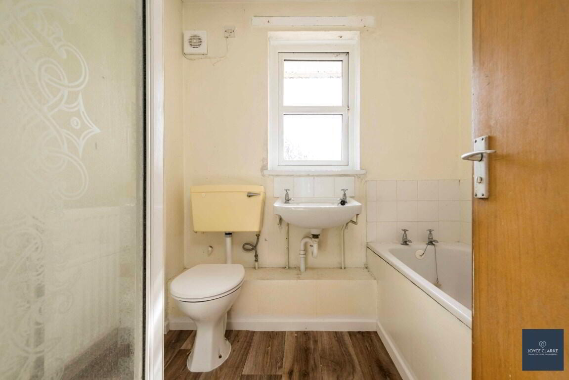 Four piece suite comprising of bath, corner shower cubicle with Triton electric shower. WC. Floating sink. Window. Extractor fan. Double panel radiator.