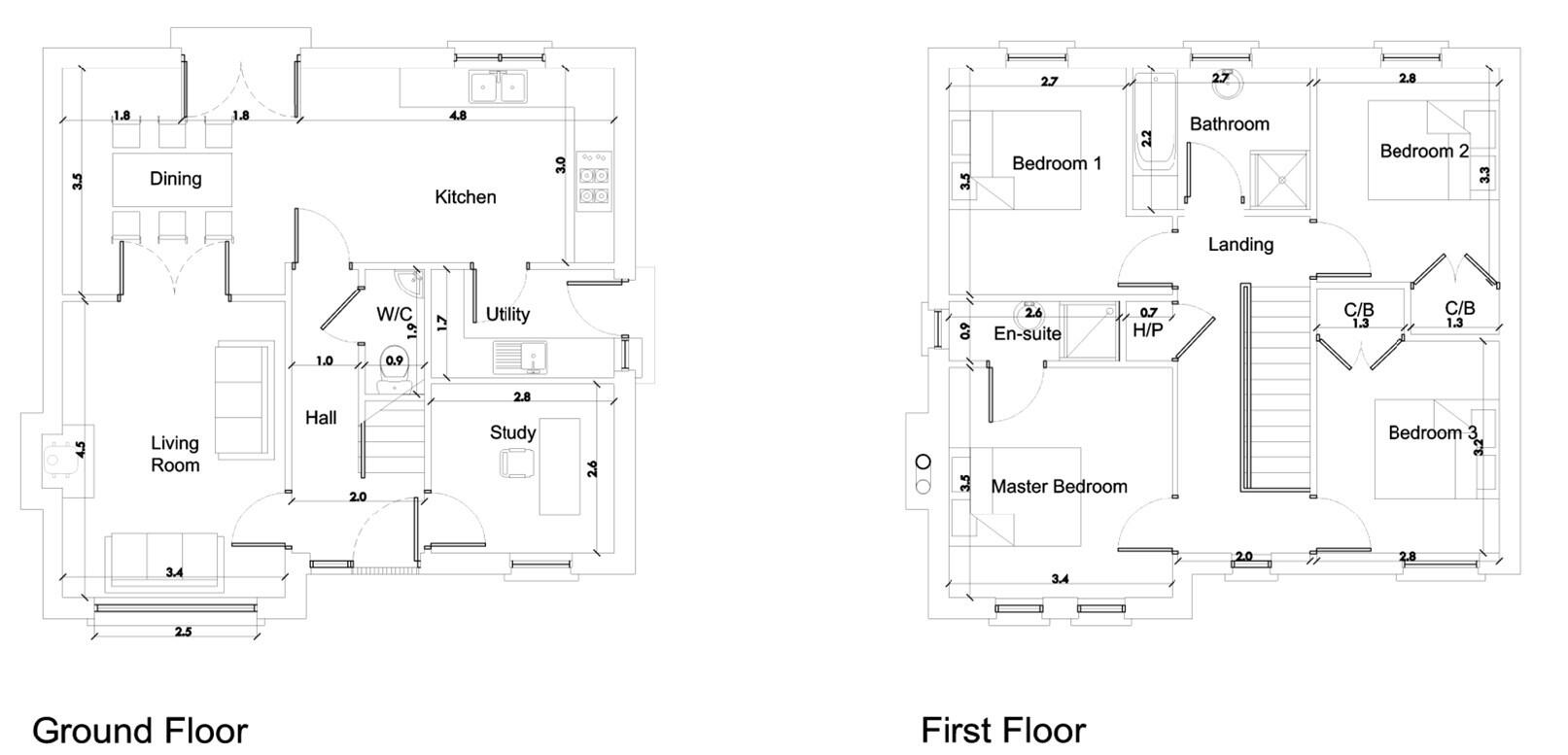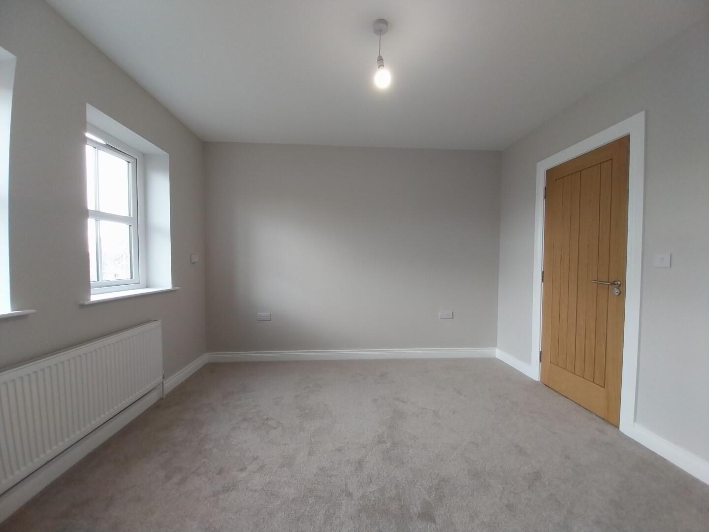 thumb turn. All skirting will be 5” MDF moulded painted white, all