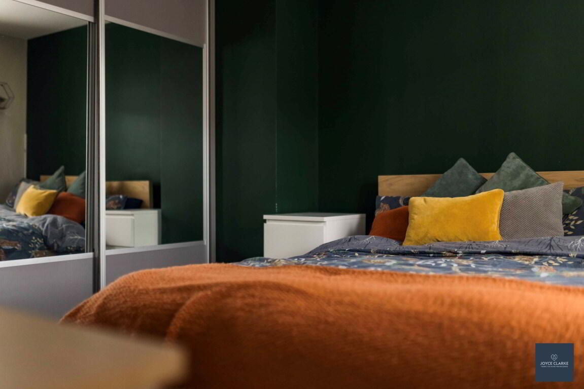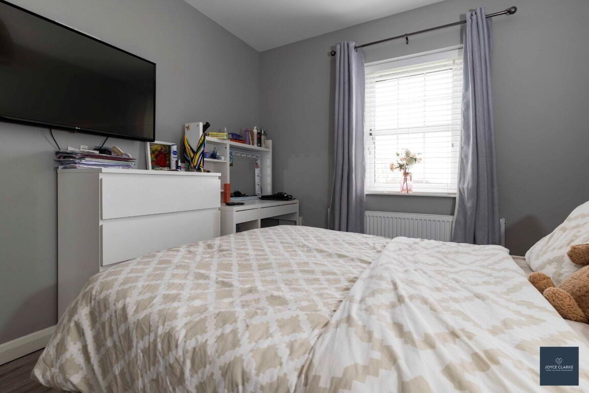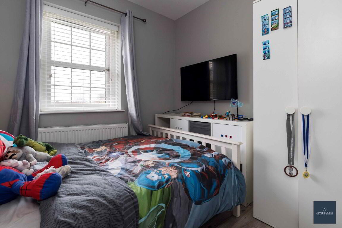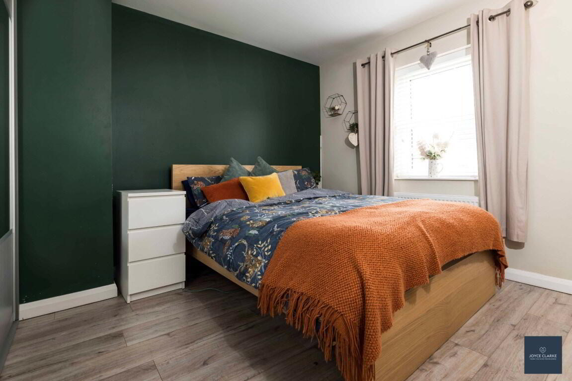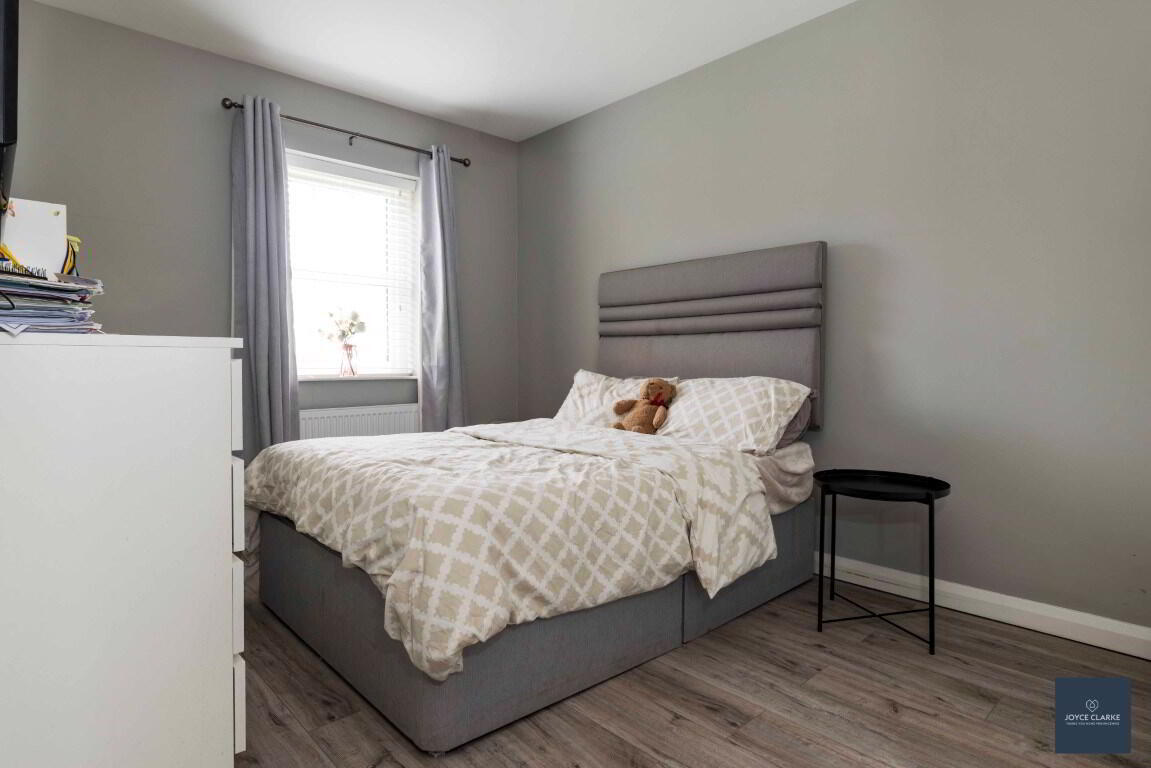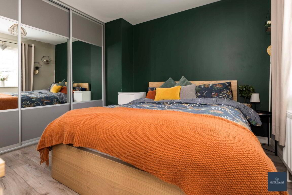 Front aspect double bedroom. Built in wardrobe with mirrored sliding doors. Laminate flooring. Thermostat. Double panel radiator.