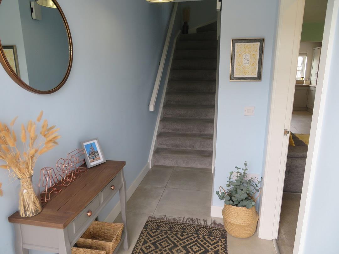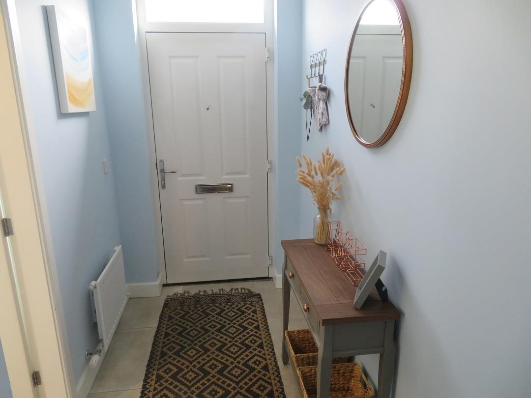 Accessed via PVC front door with double glazed fanlight window and tiled flooring.