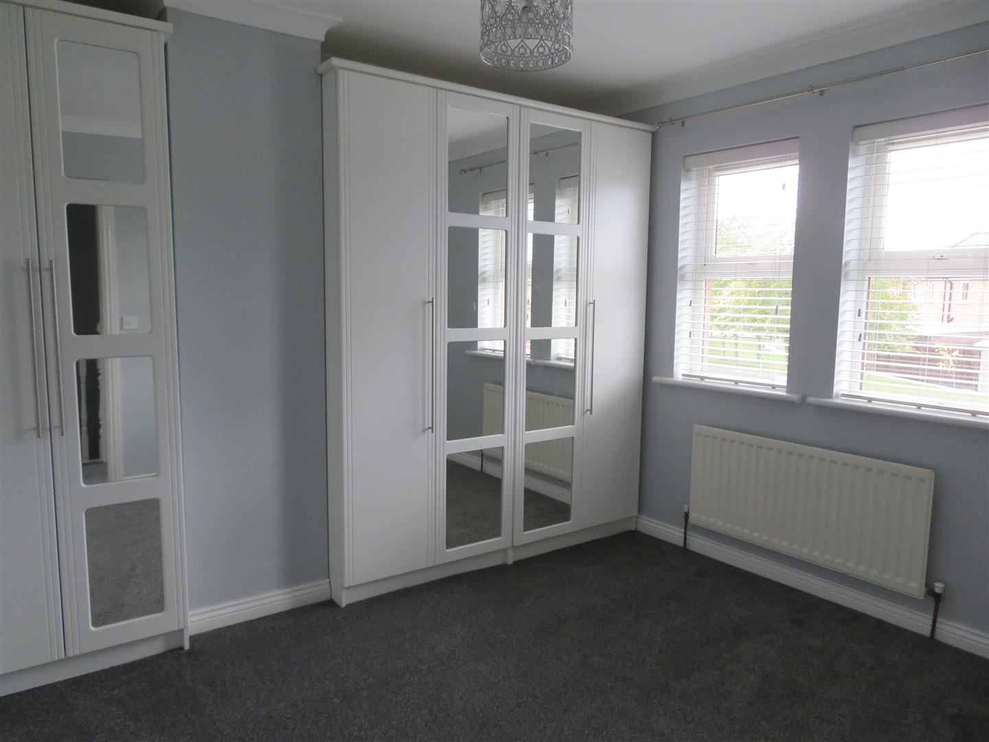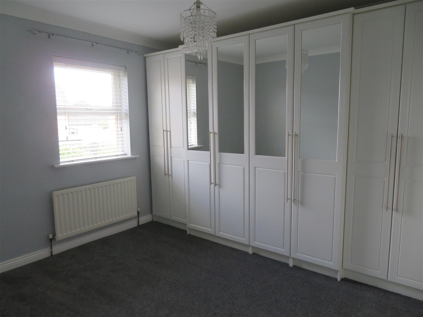 Rear aspect room with carpet flooring.