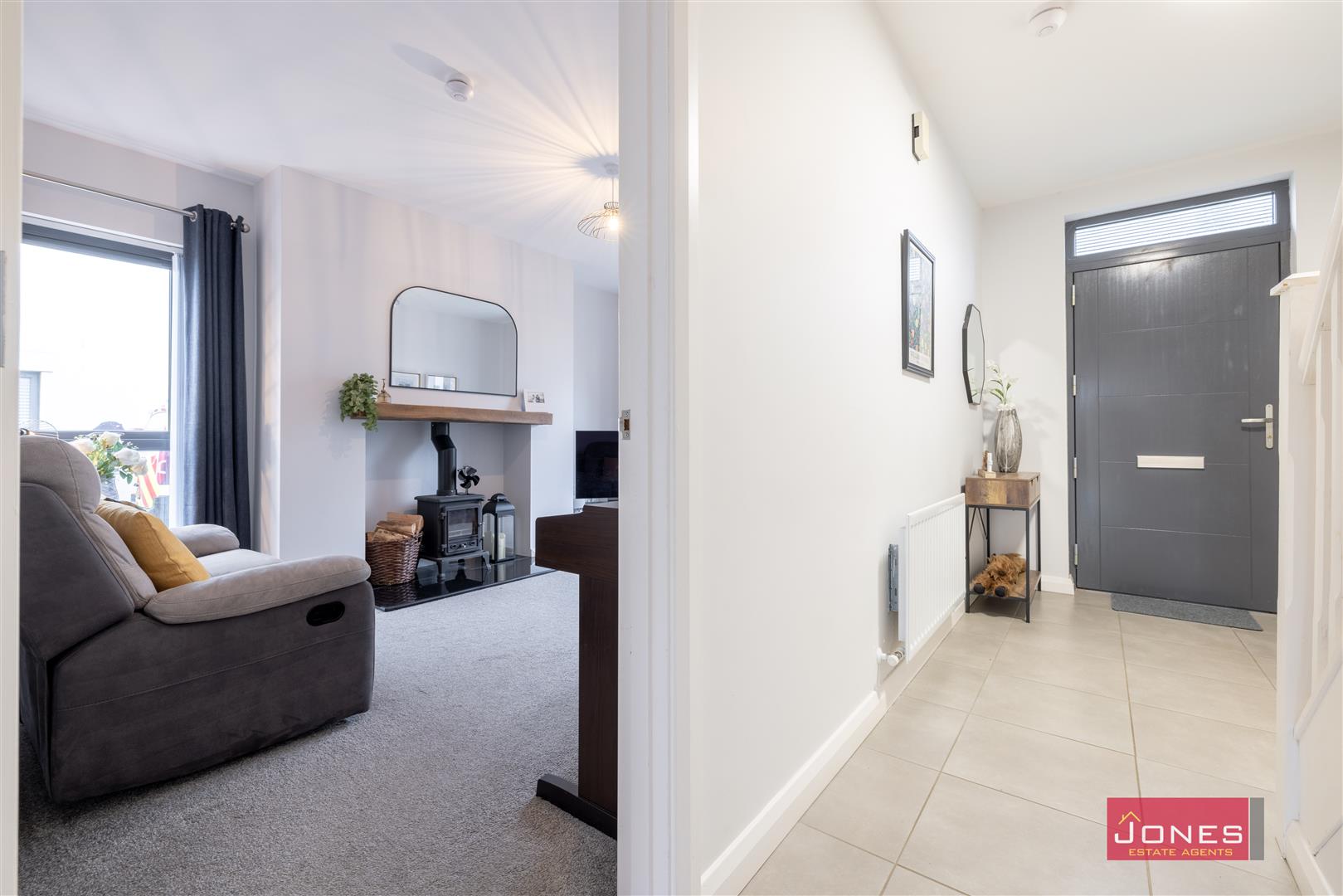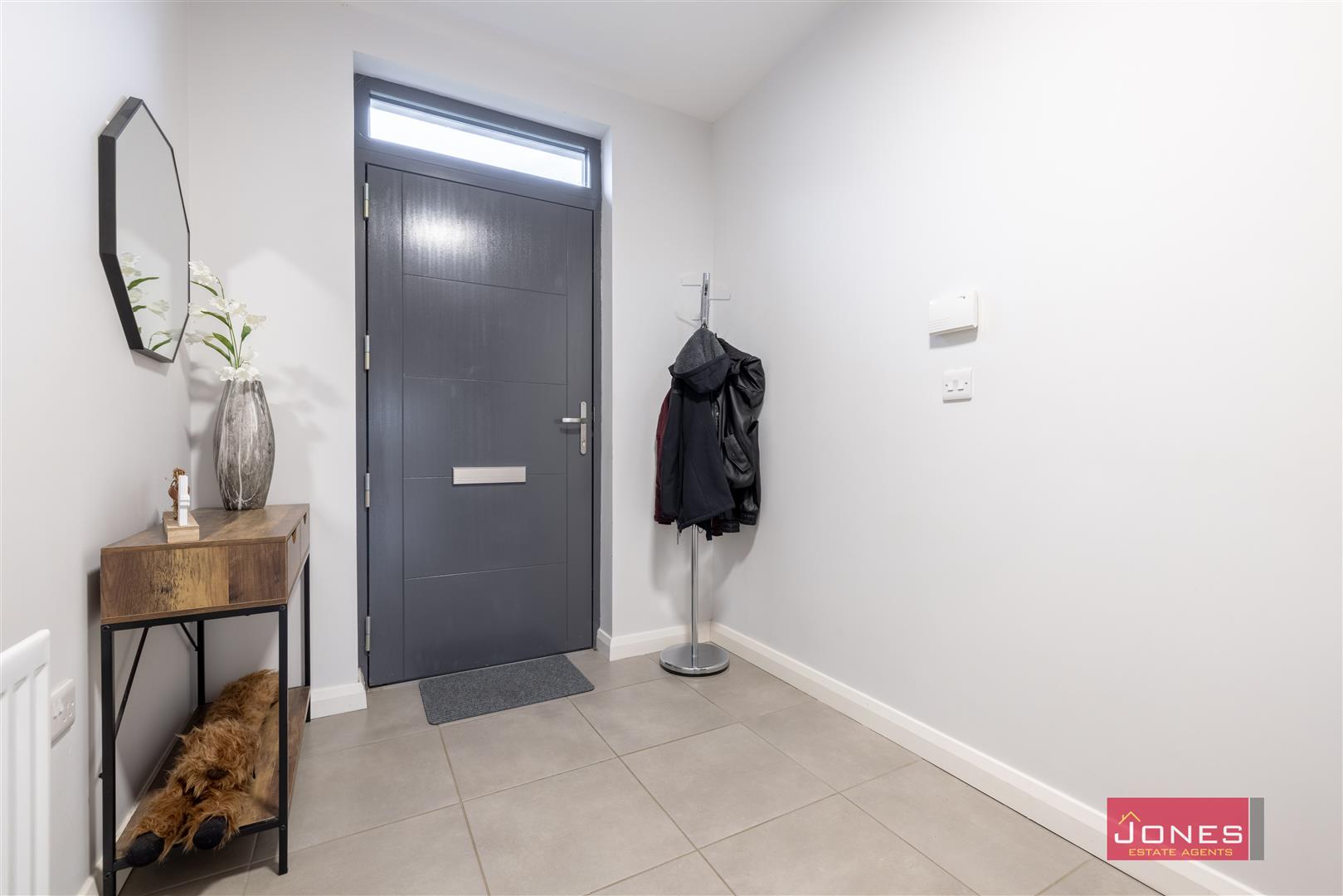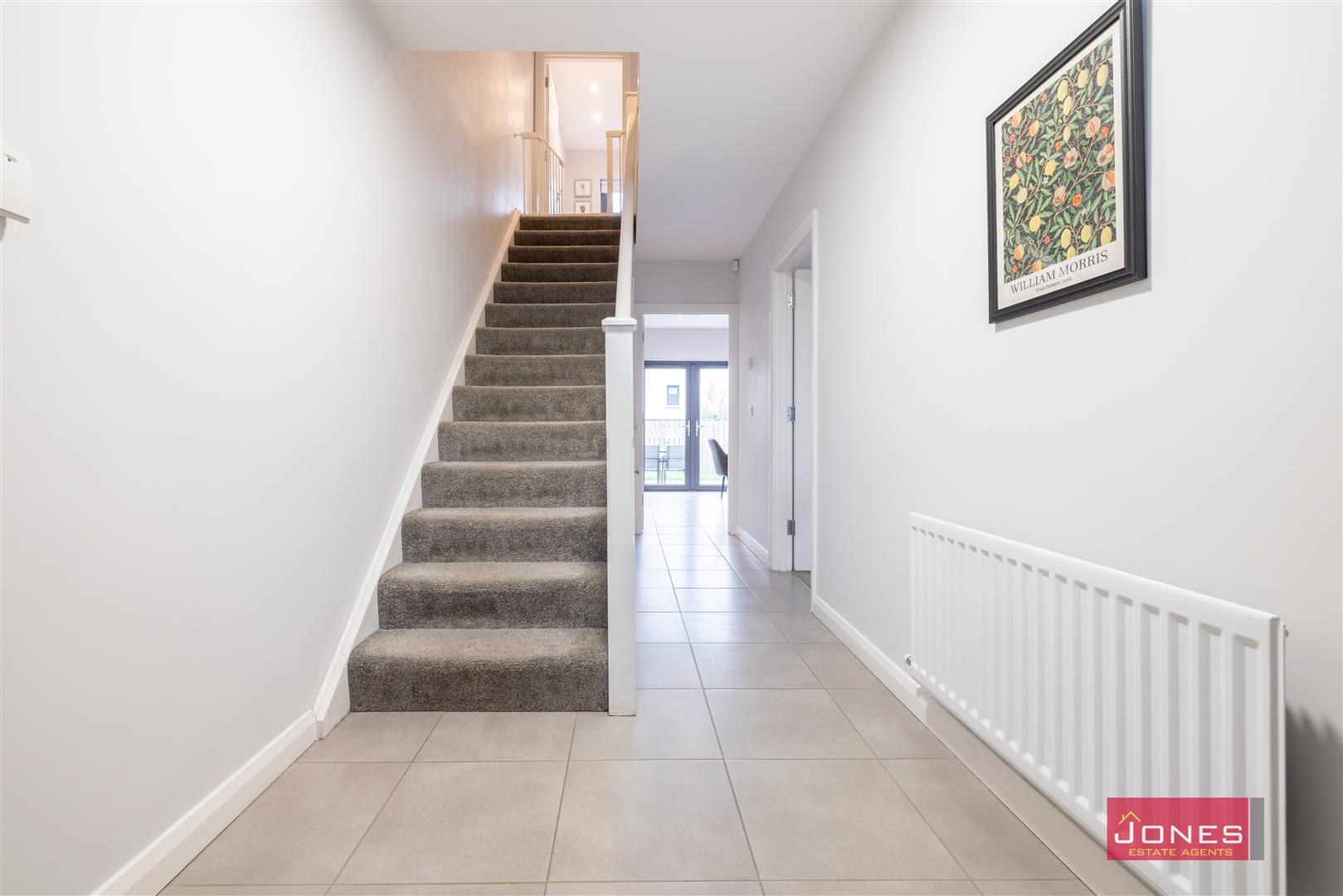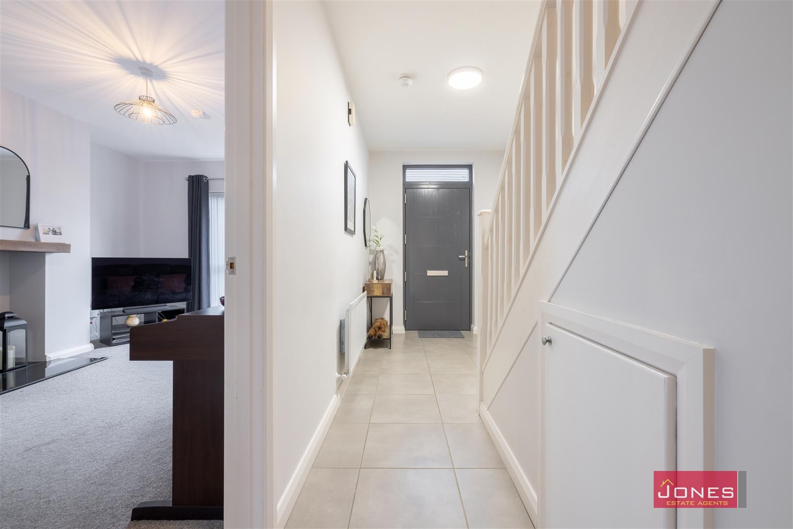 Accessed via composite front door, tiled flooring and built in storage under stairs.