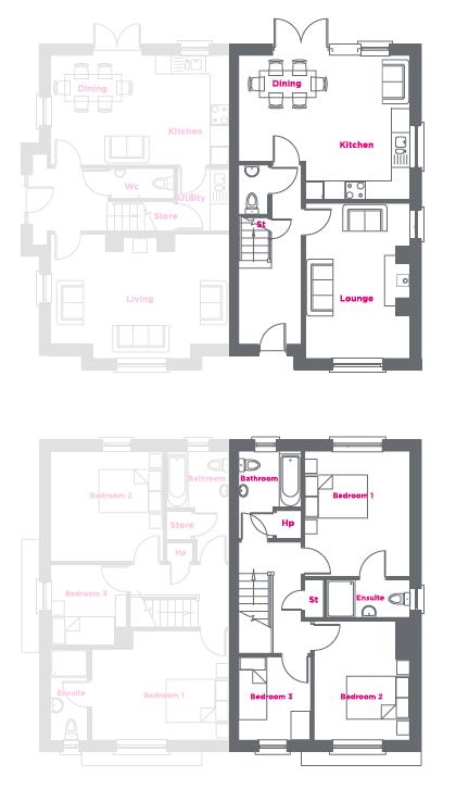 Upstairs, the home offers three well proportioned bedrooms, including a master bedroom with a private ensuite, alongside a modern family bathroom. Completing the accommodation is the ever-important ground floor WC.