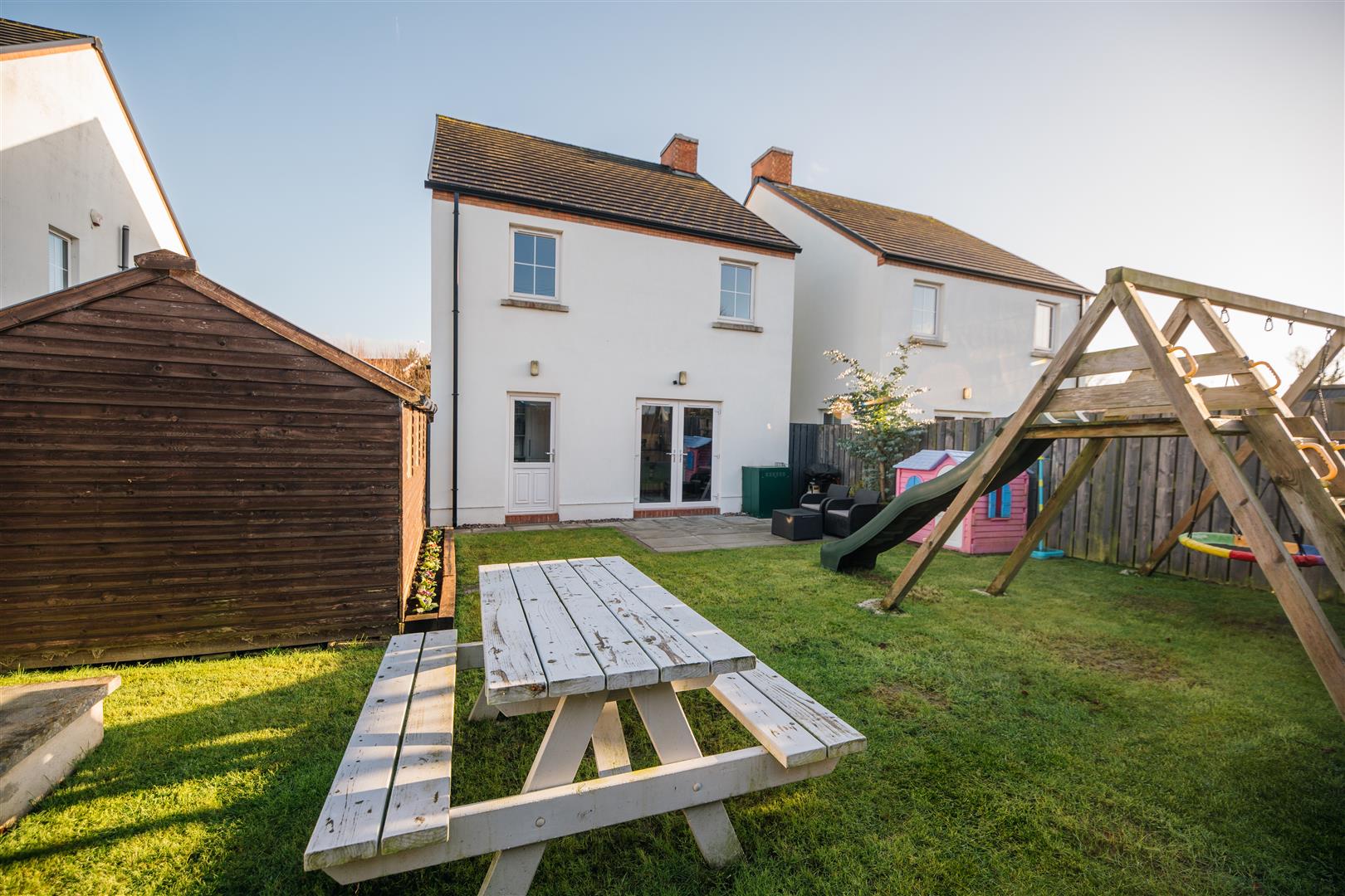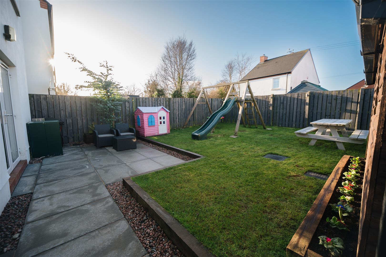 Spacious tarmac driveway to front and side of house, front garden laid in lawn. Fully enclosed rear comprising lawn and generous patio area.