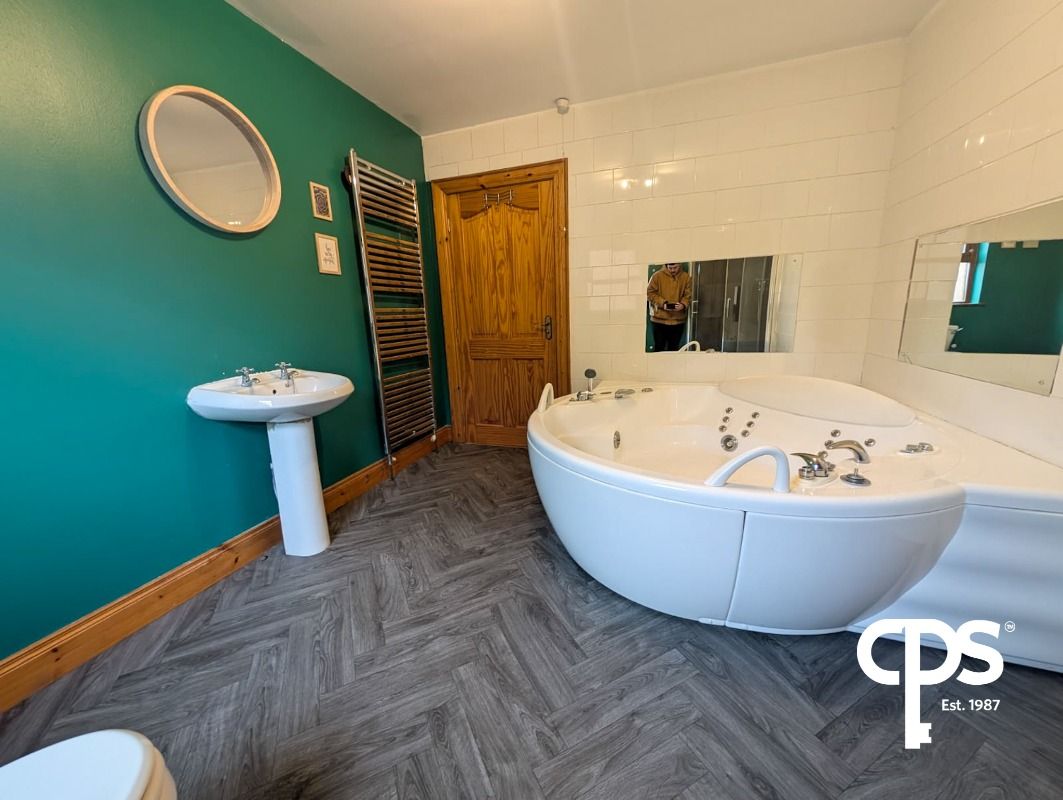 bathroom suite complete with modern finishes, large Bath and separate shower unit.