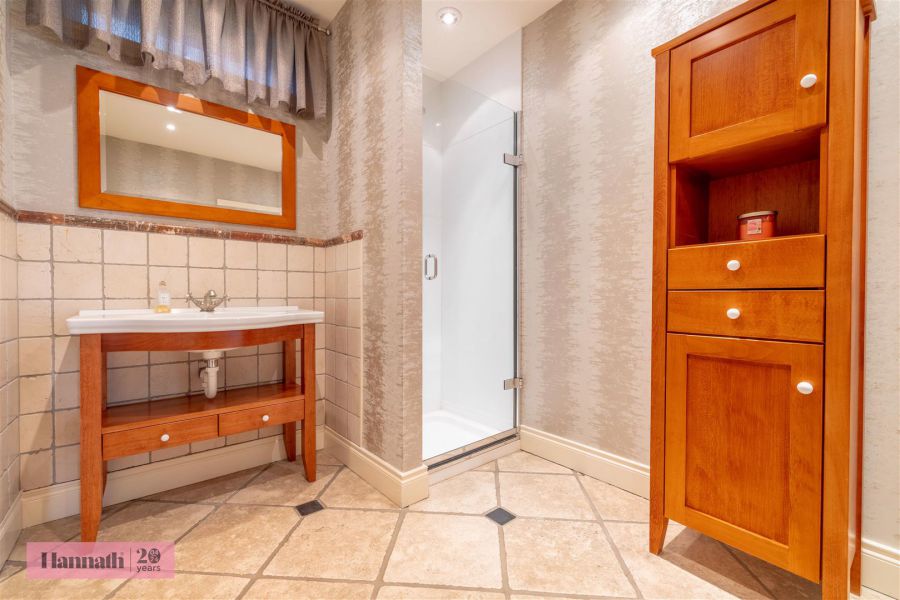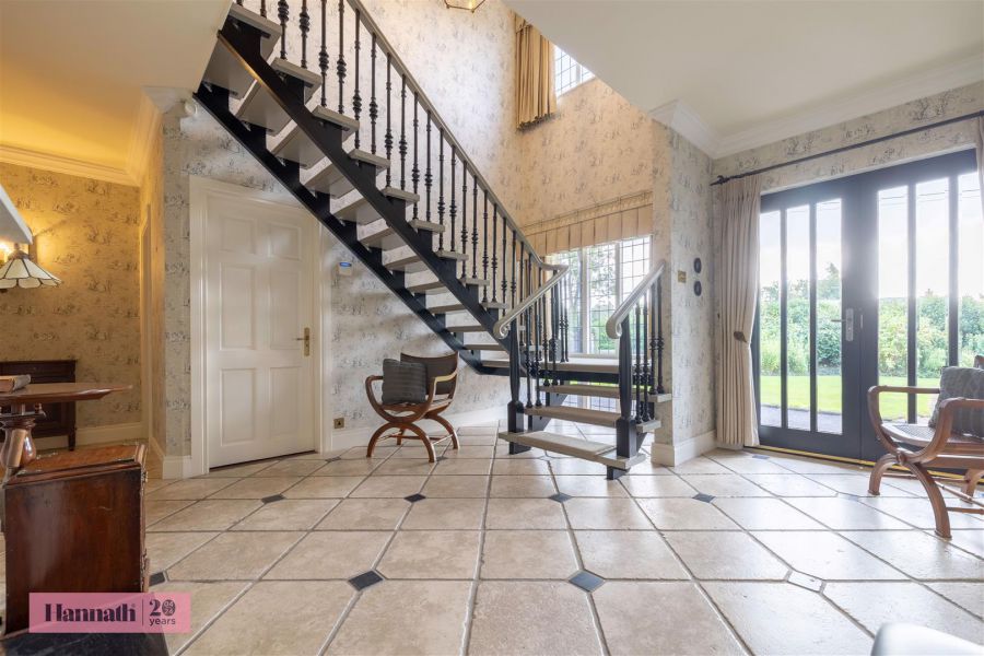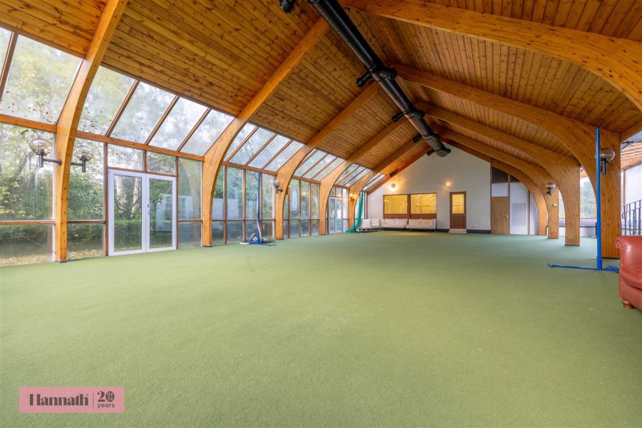 Hannath are delighted to welcome this beautifully presented five bedroom detached family home set on private grounds with a triple garage, indoor squash court, large entertainment area and two large workshops/sheds with office and w.c..