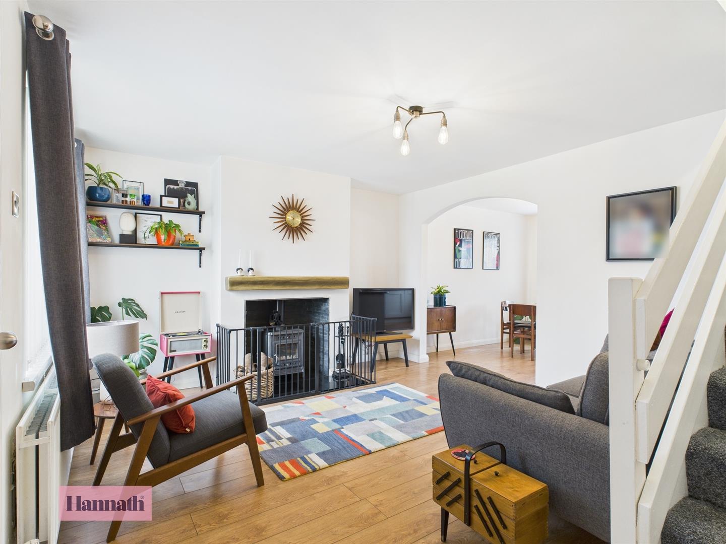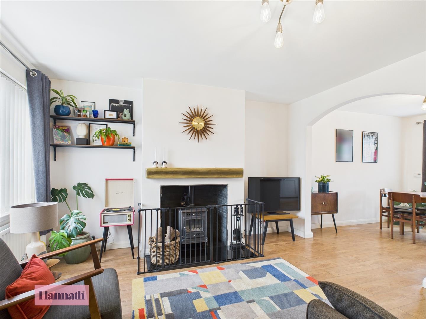 Feature fireplace with multifuel stove, wood laminate flooring, double panel radiator