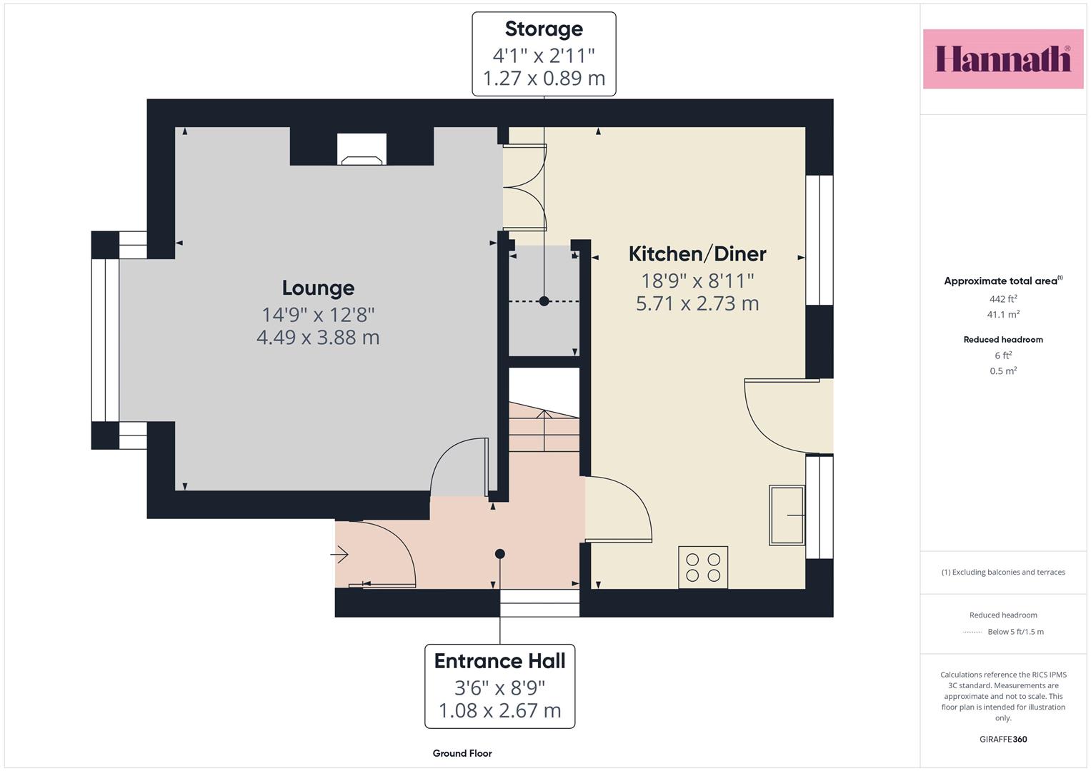 Entrance Hall 3'6" X 8'9" (1.07m X 2.67m)