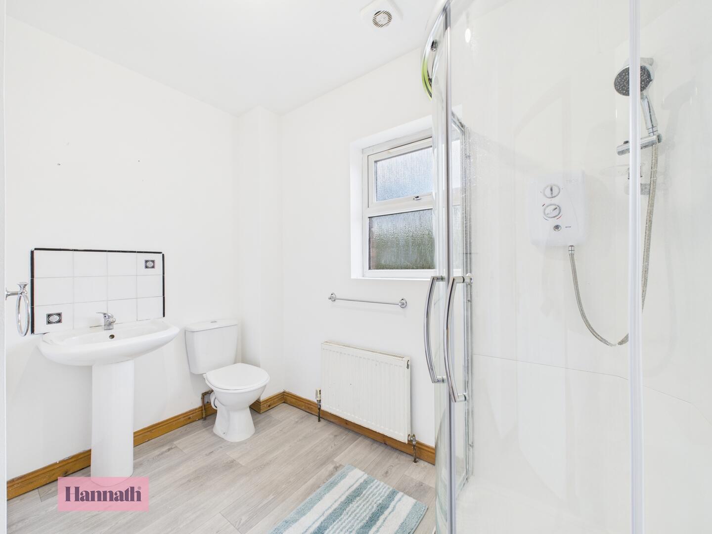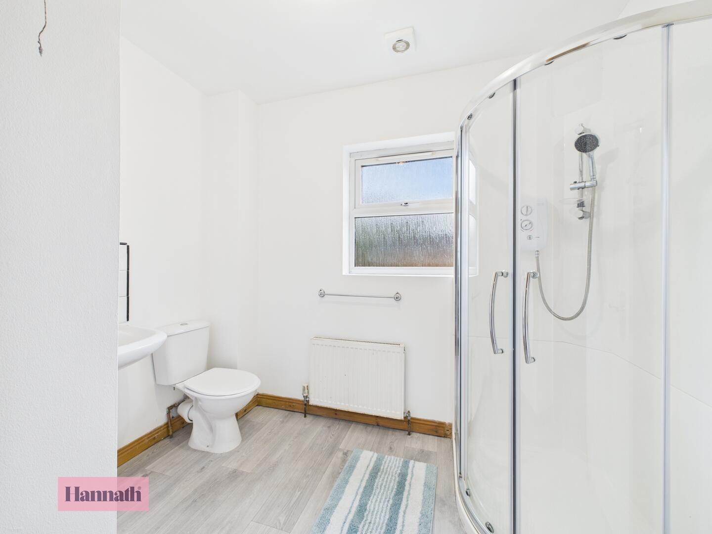 Shower cubicle with electric shower, wash hand basin, w.c., radiator