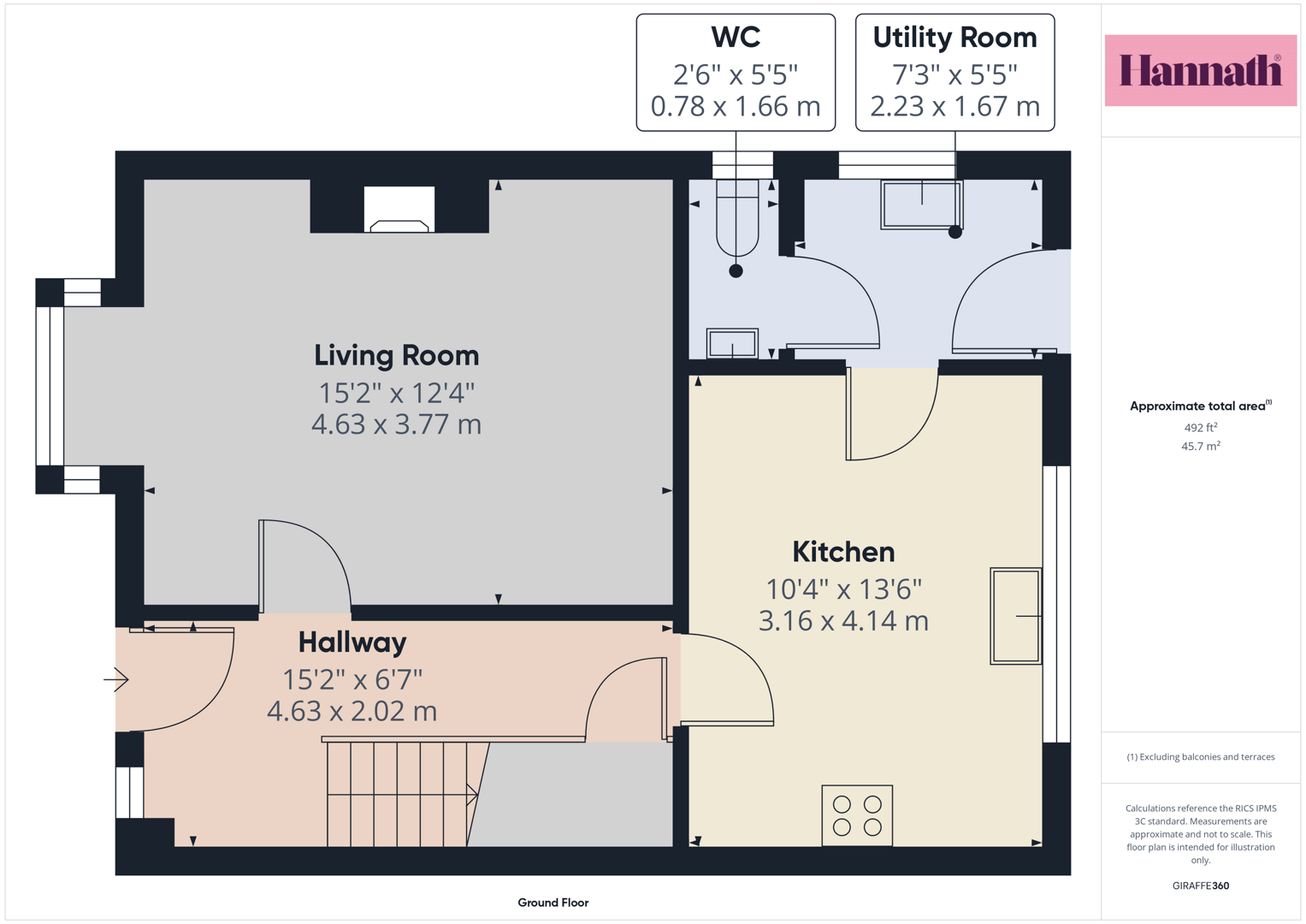 Entrance Hall 15'2 X 6'7 (4.62m X 2.01m)