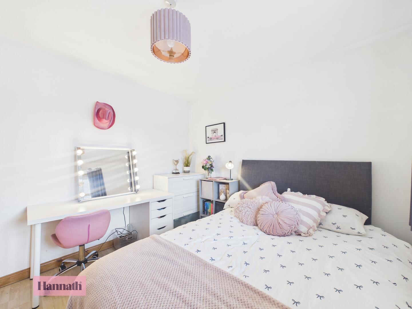 Bedroom 2 is a spacious double room with wood flooring and a large window that fills the room with light. It offers ample space for bedroom furniture and storage.