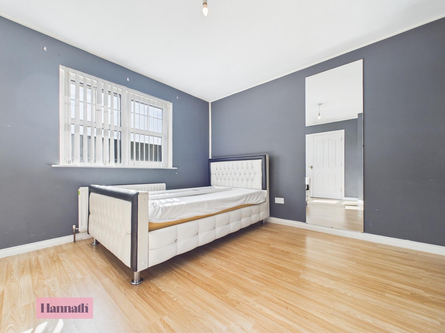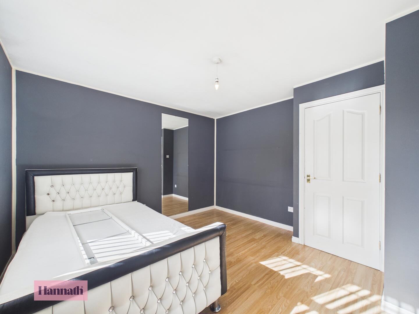 Bedroom 1 offers a comfortable double space with wood effect flooring and neutral décor.