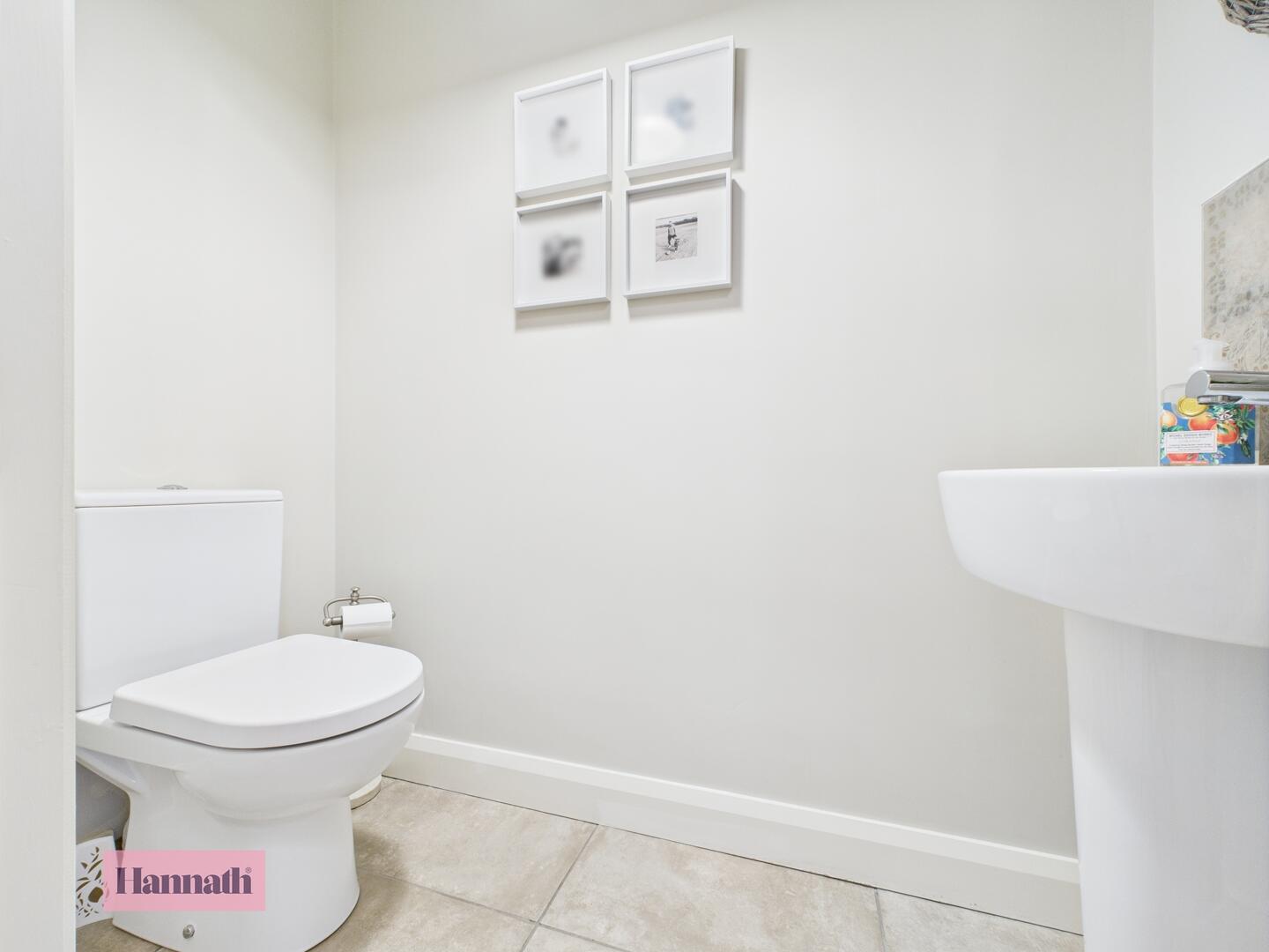 Wash hand basin, w.c., tiled flooring