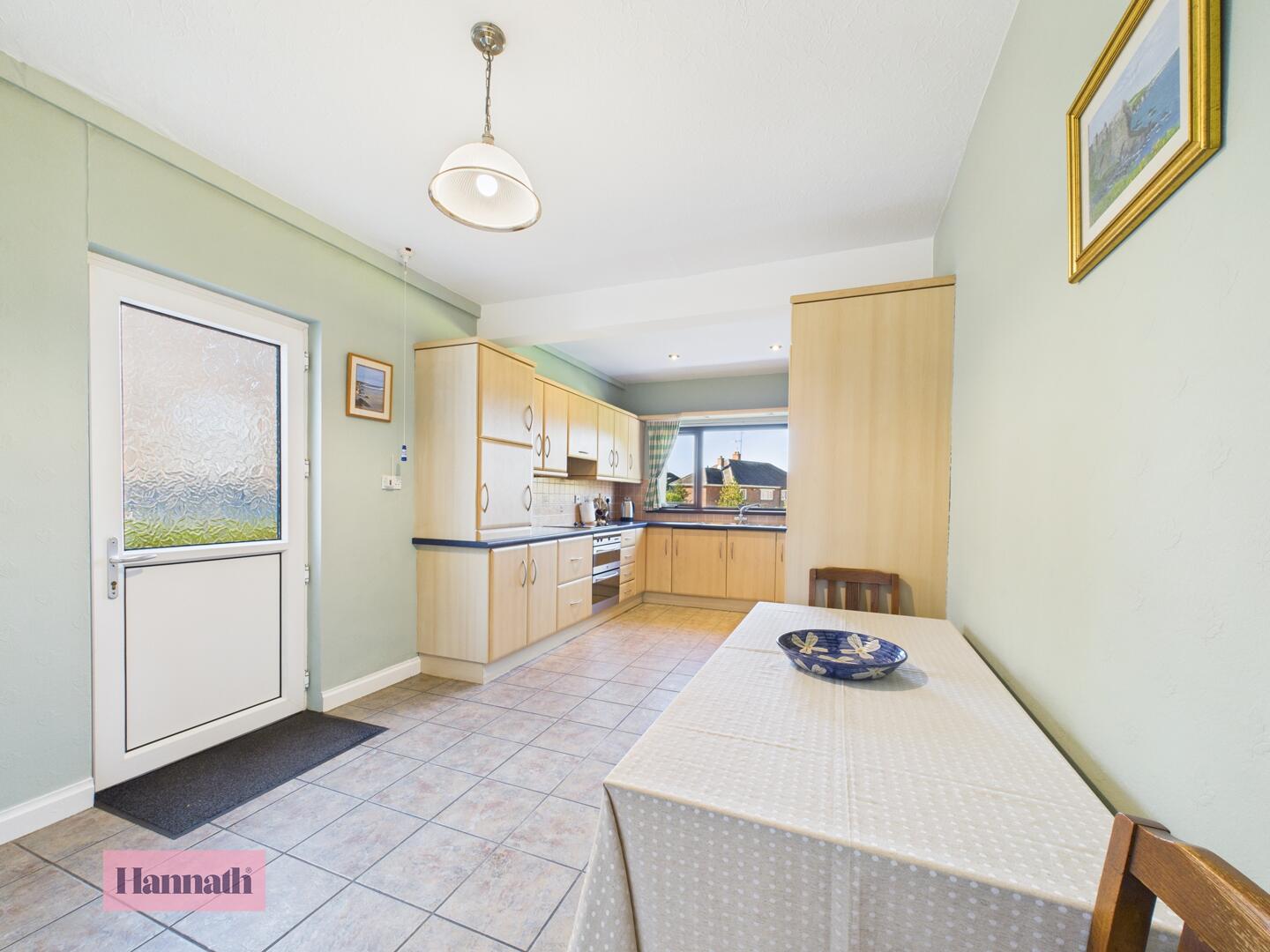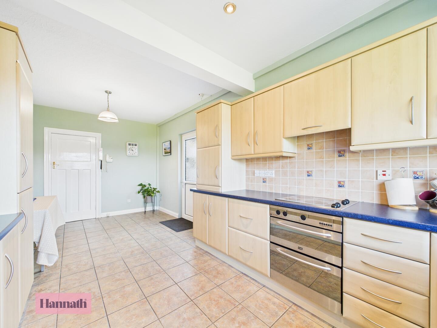 Range of high and low level fitted units with hard wearing worktop and stainless steel sink with mixer tap. Integrated fridge/freezer, hob, oven and dishwasher. Plumbed for washing machine. Tiled splash back and tiled flooring. Access to side garden via; PVC single door.