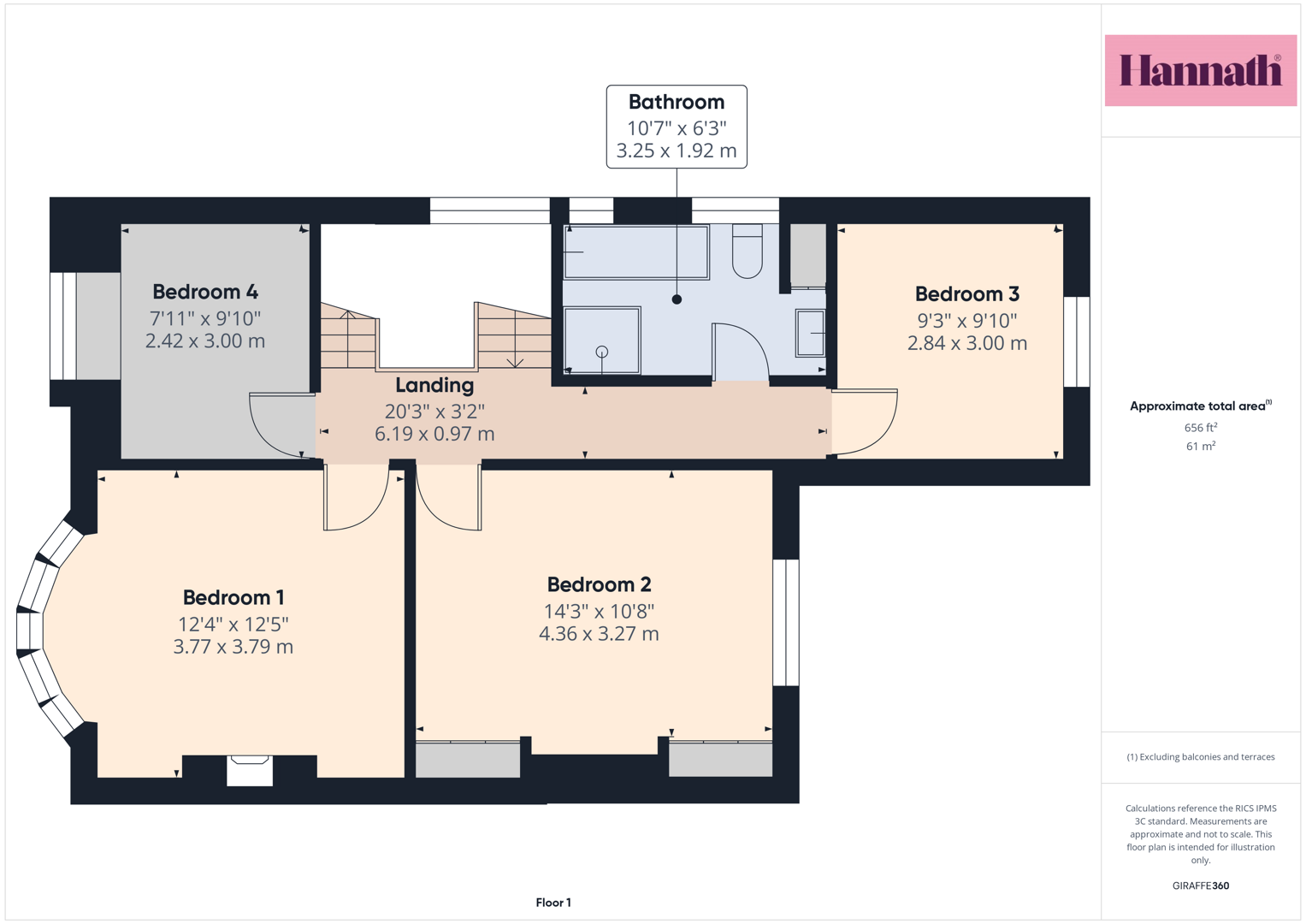 Landing 20'3 X 3'2 (6.17m X 0.97m)