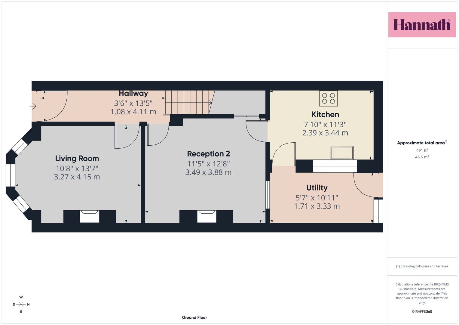 Entrance Hall 13'5 X 3'6 (4.09m X 1.07m)