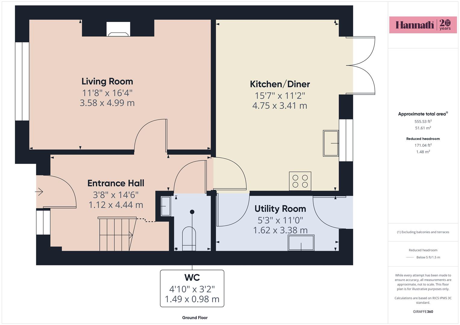 Utility Room 5'3" X 11'0" (1.60m X 3.35m)