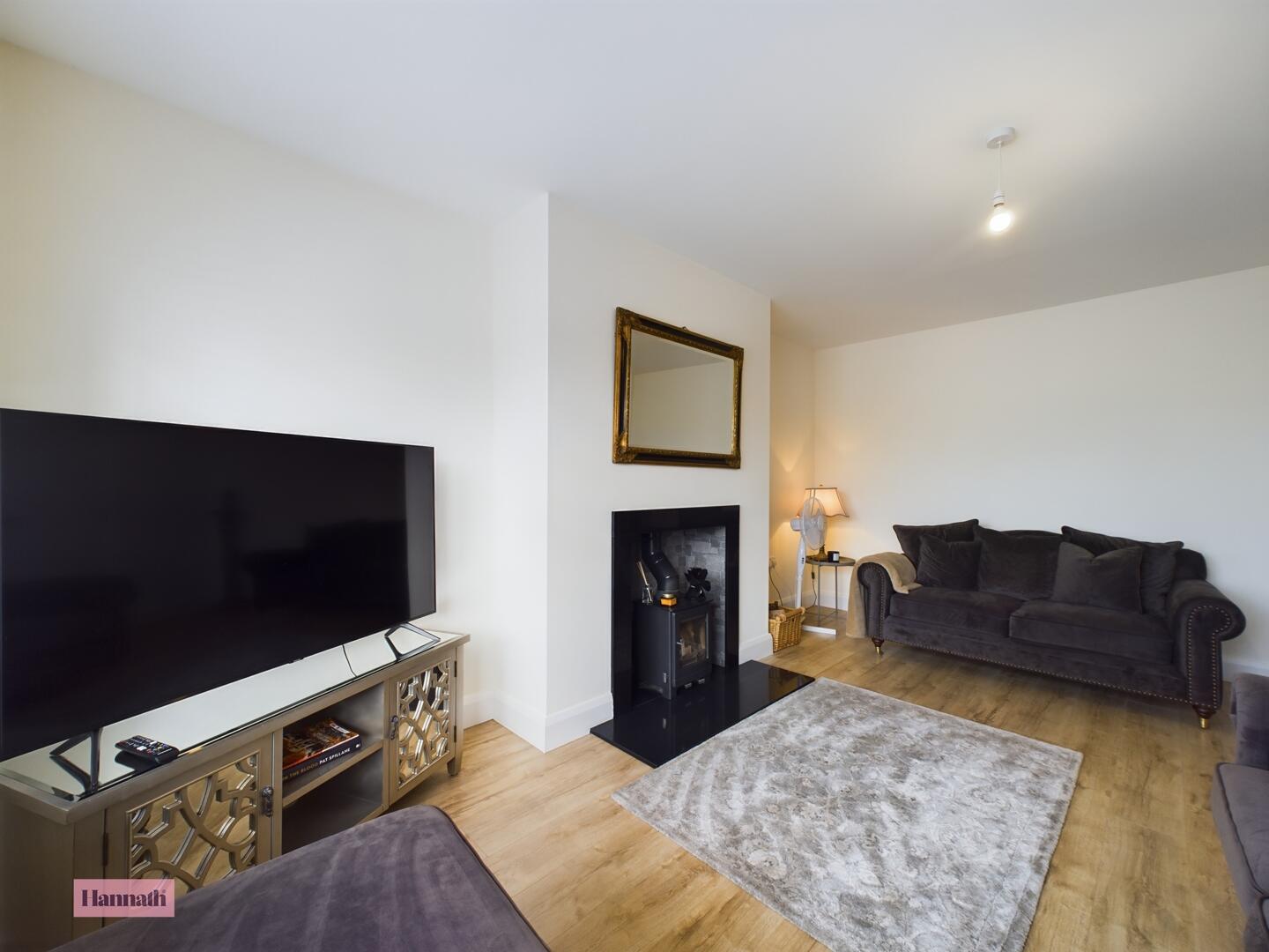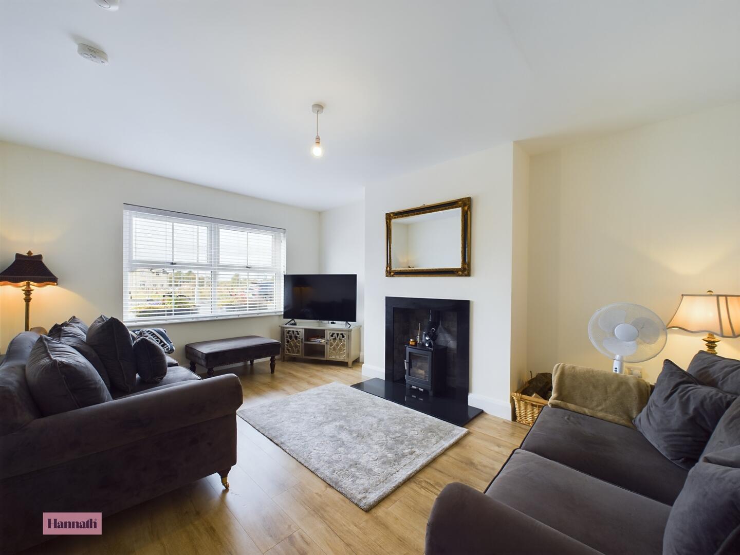 Wood effect flooring. Feature fireplace with multi-fuel stove and granite hearth.