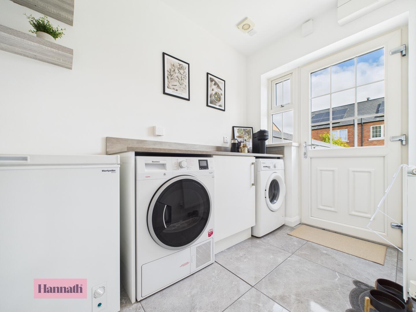 Plumbed for washing machine and space for tumble dryer. Fitted unit with hard wearing worktop and upstand. Single panel radiator. Tiled flooring. Access to rear garden via; PVC door.