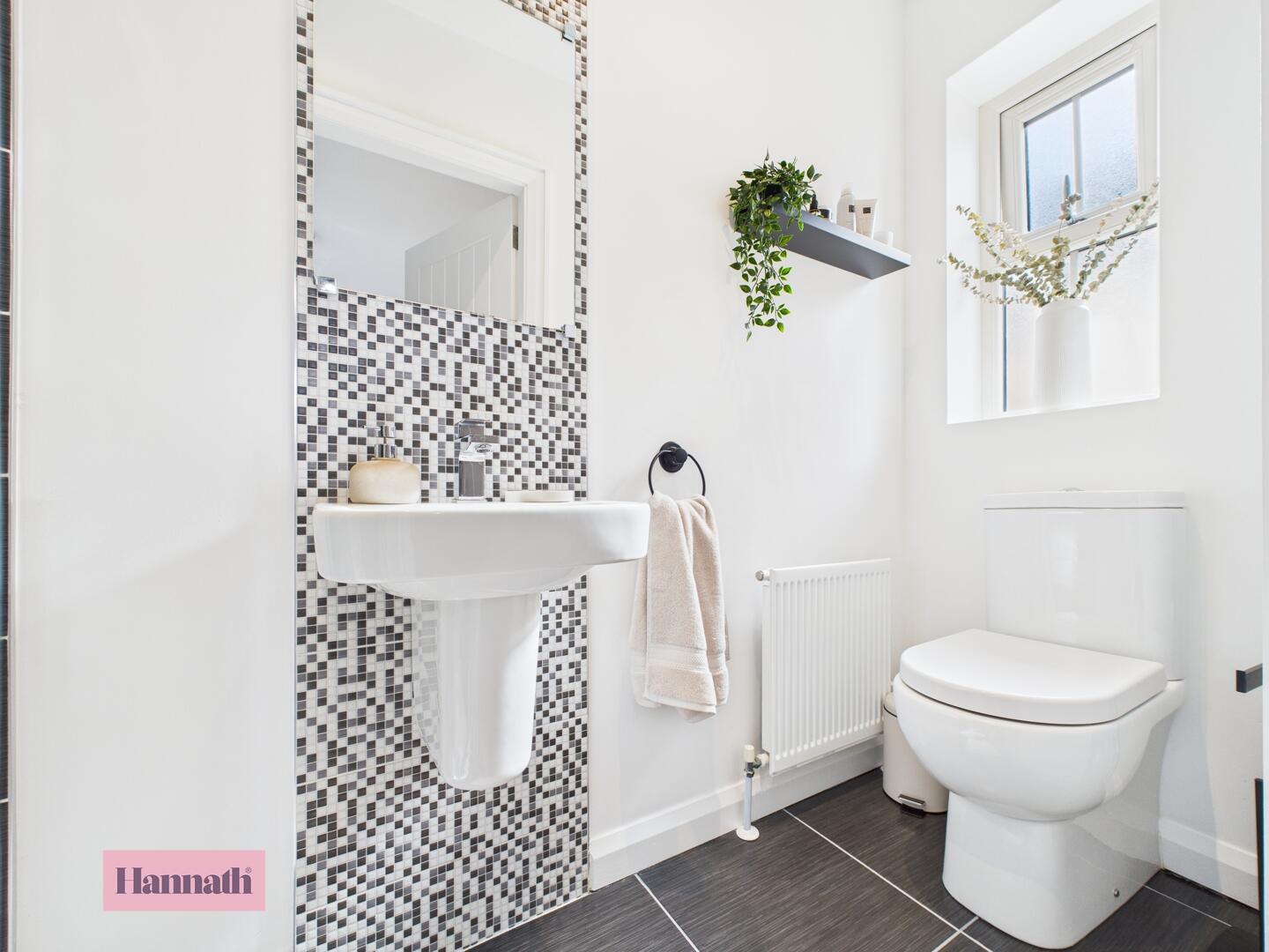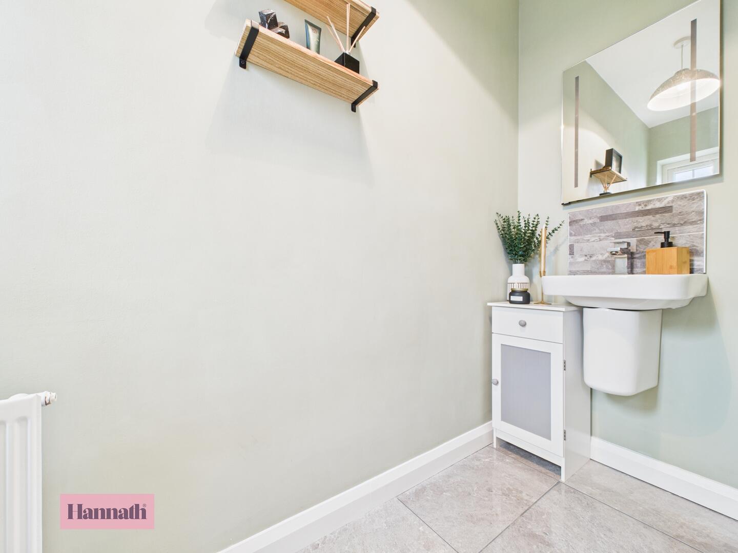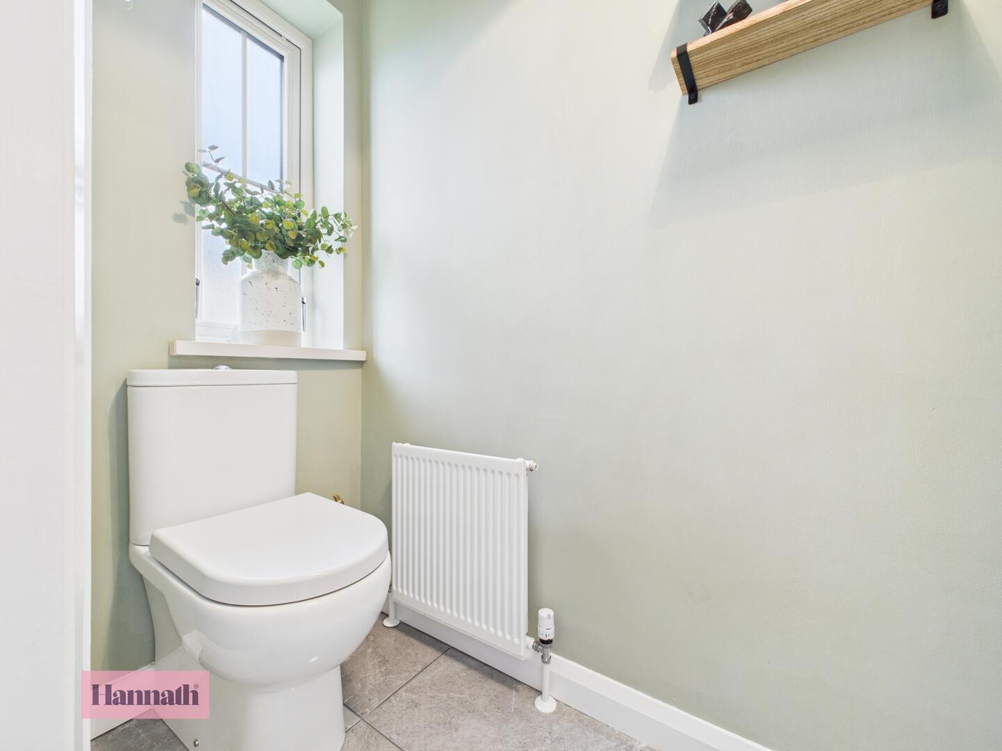 Comprising of; low flush WC with was hand basin. Tiled flooring and tiled splash back. Single panel radiator.