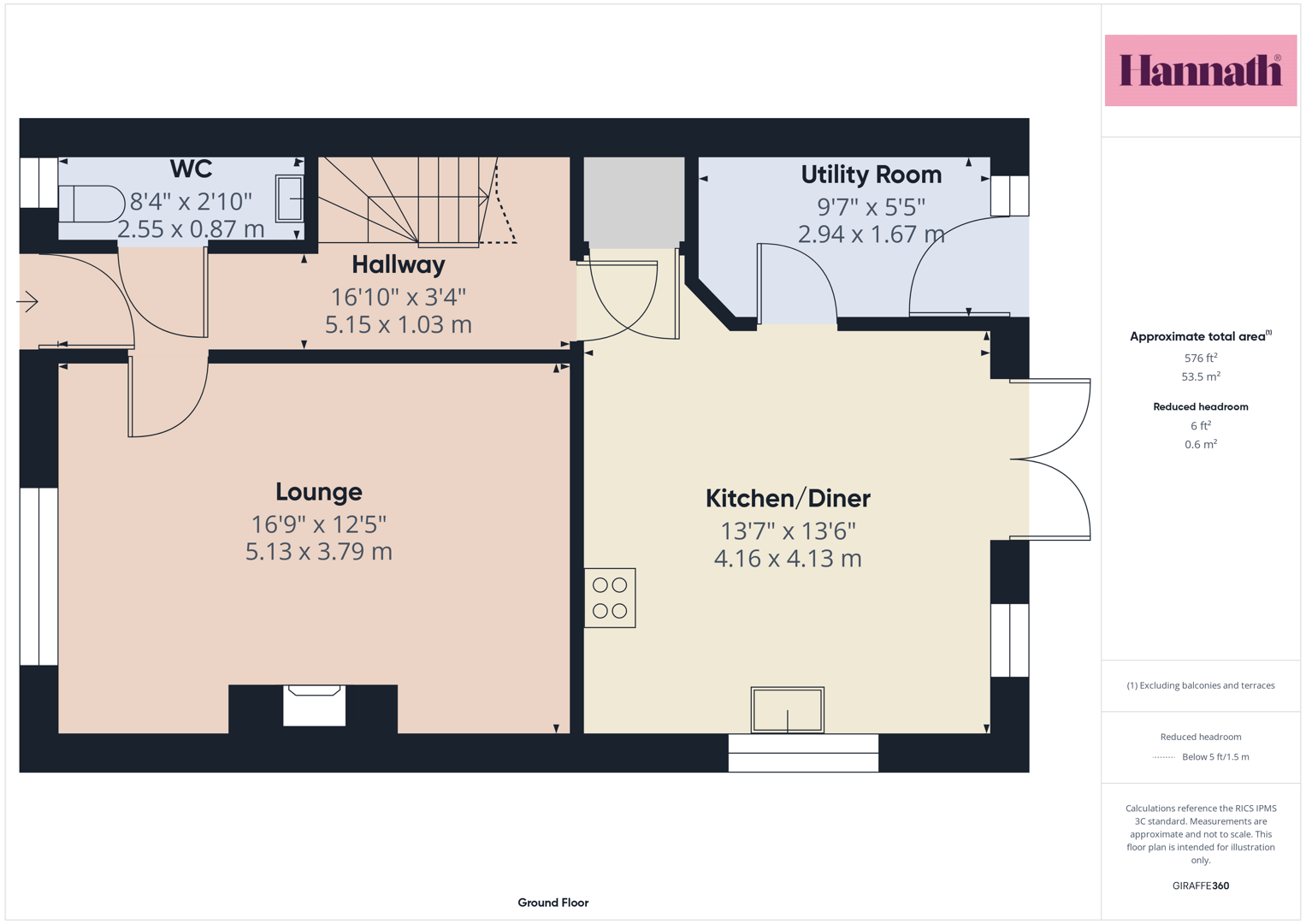 Hallway 16'10 X 3'4 (5.13m X 1.02m)