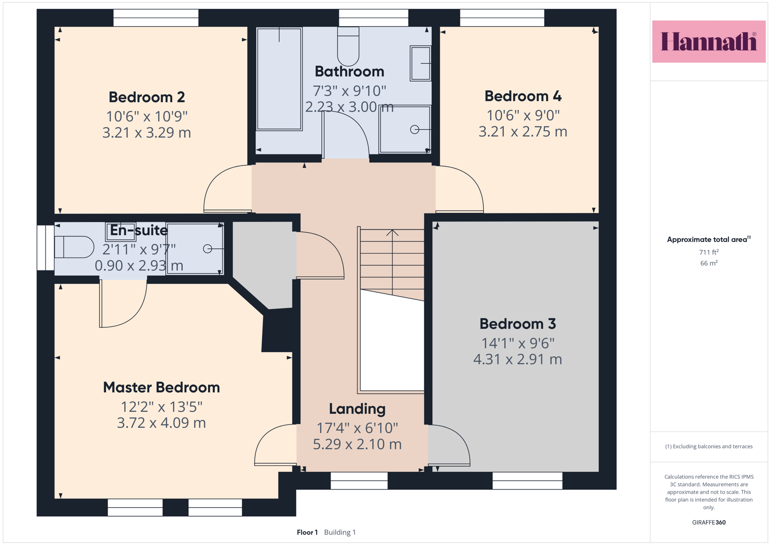 Landing 17'4 X 6'10 (5.28m X 2.08m)