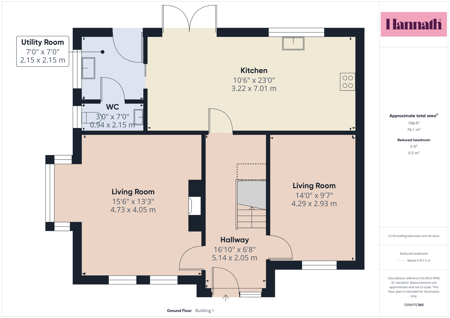 Downstairs W.C. 7'0 X 3'0 (2.13m X 0.91m)